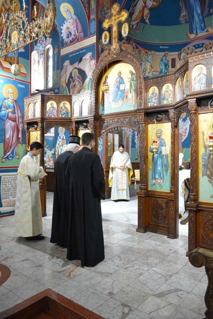 Високопреосвећеном су саслуживали: ректор богословије протојереј ставрофор др Зоран Крстић, јеромонах Јован (Прокин), јереј Владимир Вранић и ђакон Александар Ђорђевић.