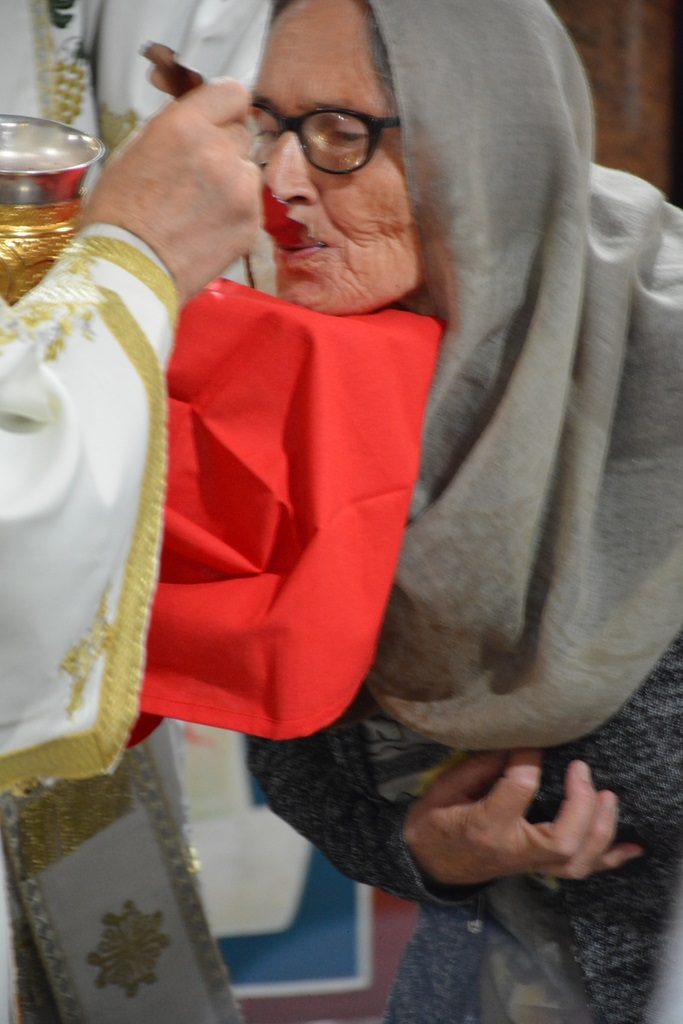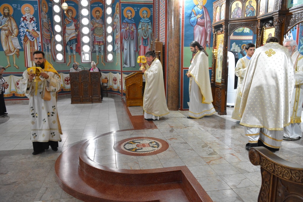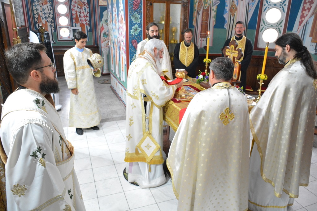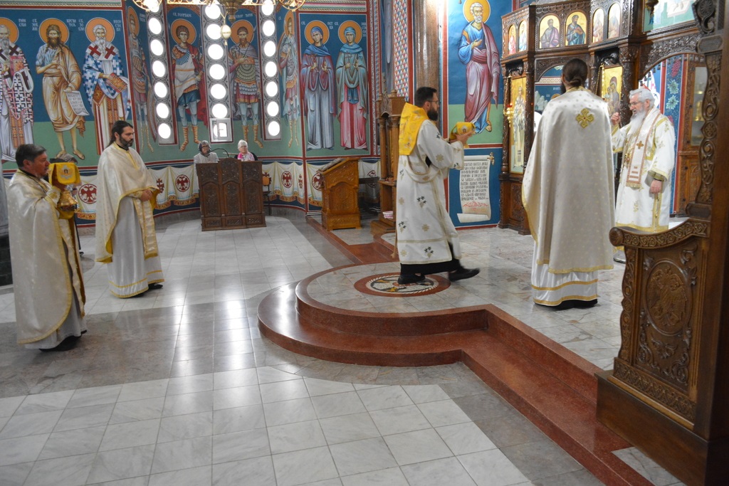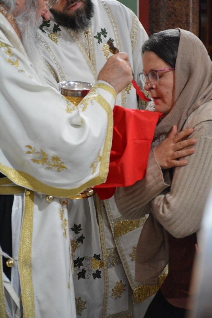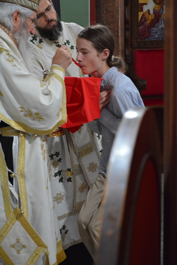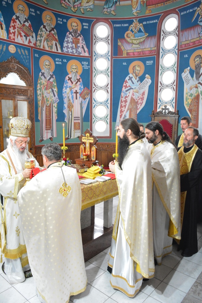 У наставку свете литургије Високопреосвећени Митрополит је причестио верни народ Телом и Крвљу Господњом.