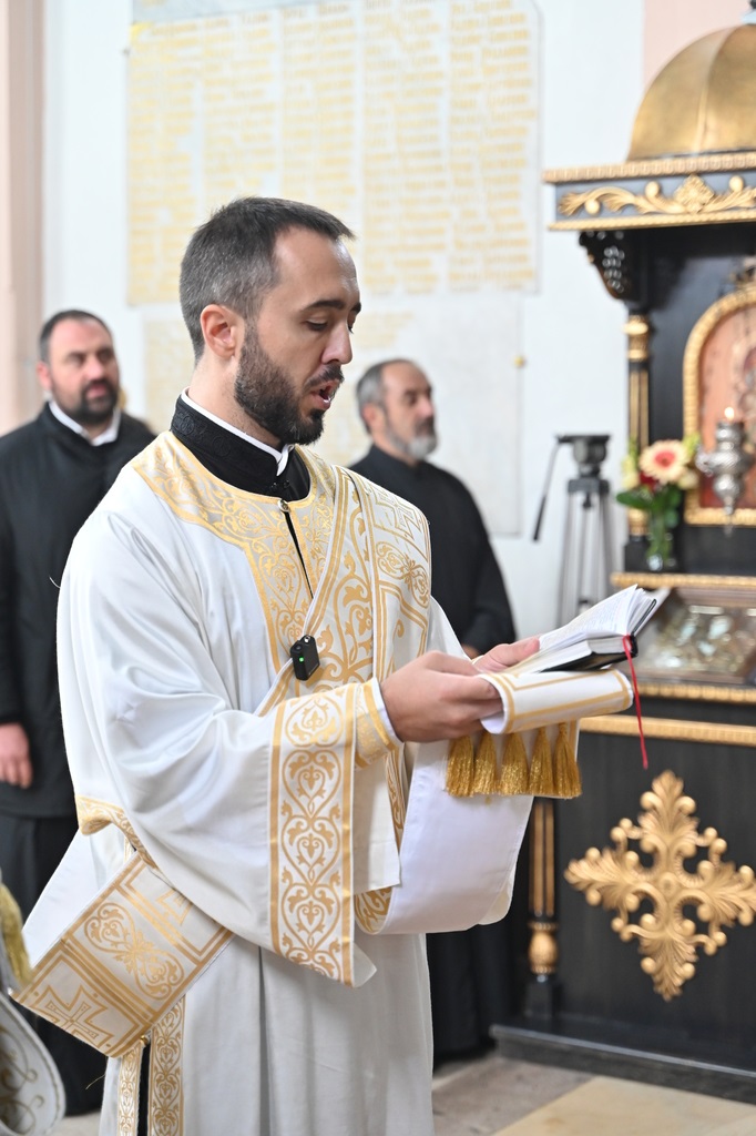 Његовом Високопреосвештенству су саслуживали Архијерејски намесник орашачки, протојереј-ставрофор Мићо Ћирковић, Архијерејски намесник опленачки, протојереј-ставрофор Миладин Михаиловић, протојереји Слободан Раковић и Александар Миловановић, протонамесник Немања Искић, јереј Марко Урошевић, протођакон Иван Гашић и ђакон Александар Бабић.