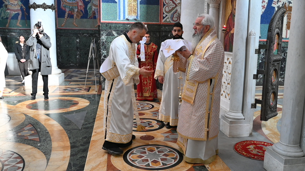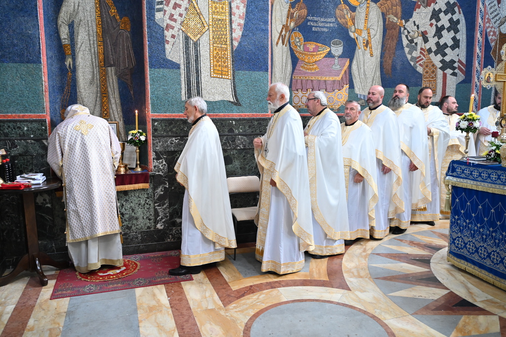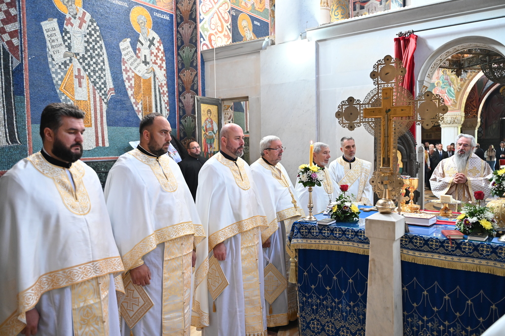 Митрополиту су саслуживали свештеници шумадијске епархије. Литургију су појали чланови певачког друштва „Србски православни појци“ из Београда.