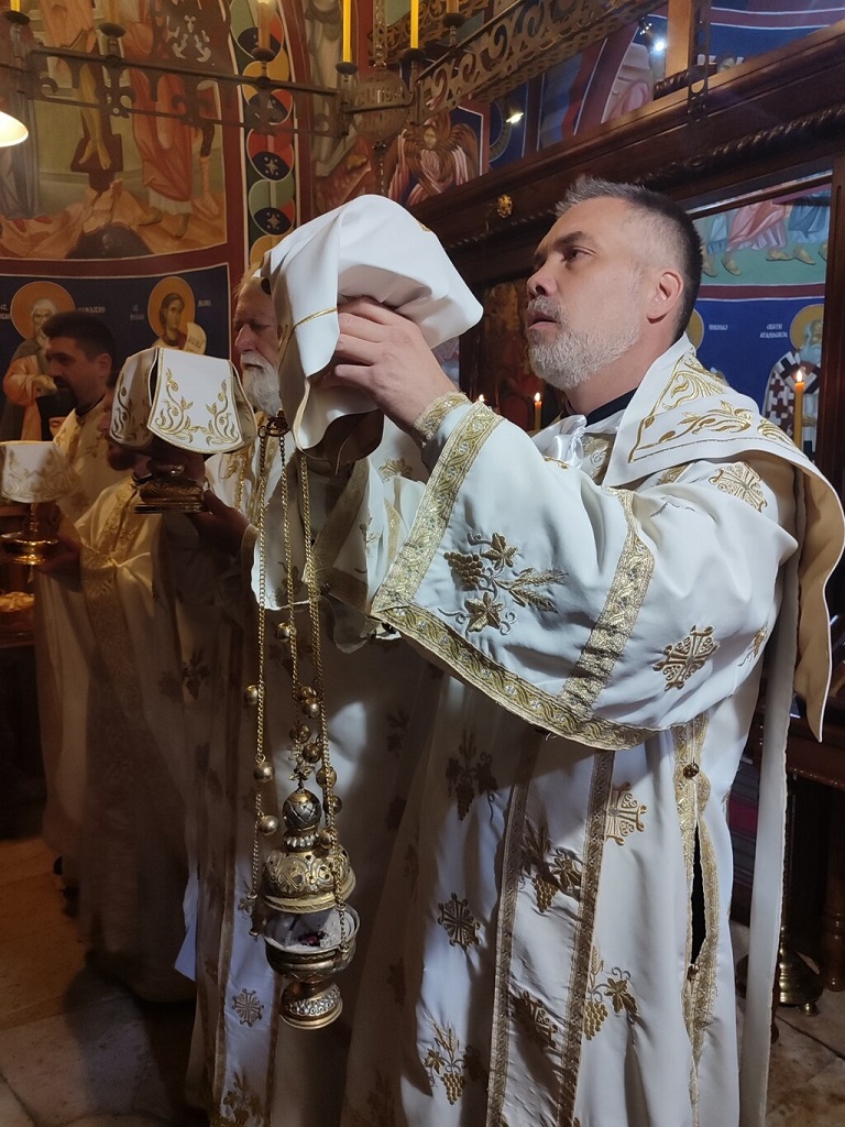 После прочитаног одломка из Светог Јеванђеља које описује богати риболов (Лука, 5, 1-11. Зач.17.) беседио је ђакон Стеван Илић. Он је истакао да је врло корисно за сваког хришћанина да схвати да без Бога не може ништа чинити, па макар се много трудио, као што су то чинили Симон, Јаков и Јован, и да при сусрету човека са истинитим Богом, човек треба да спозна своју грешност. Управо та спознаја грешности човека води покајању, покајење Христу, а Христос препорођају.