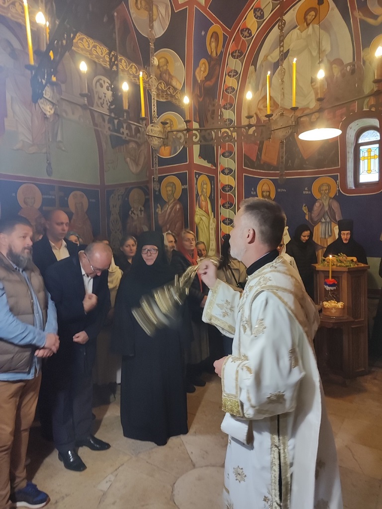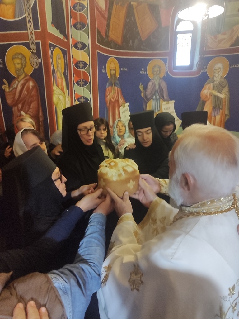 Након заамвоне молитве освећени су славски дарови и пресечен је славски колач. Сабрање је настављено славским ручком у манастирској трпезарији који су са великом љубављу и трудом припремиле настојатељница овог свештеног манастира мати Евгенија, монахиња Киријакија и верни народ овог краја.