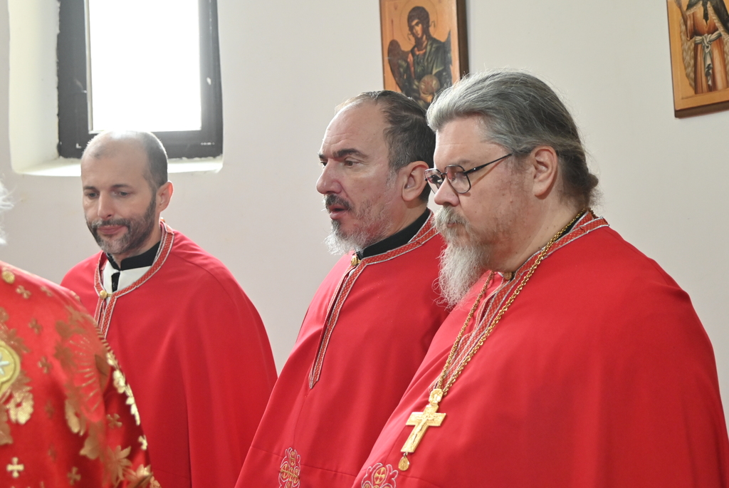 Архијереју Шумадијске епархије саслуживали су високопреподобни архимандрит Евтимије јошанички и протосинђел Пајсије шуљковачки, високопречасни протојереји Александар Гајић, арехијерејски намесник белички, и Милан Ђорђевић, пречасни јереји Срђан Дангузовић и инж. хаџи Жељко Јовановић из Бељаничког архијерејског намесништва, као и пречасни протођакон Иван Гашић и часни ђакон Далибор Нићифоровић.