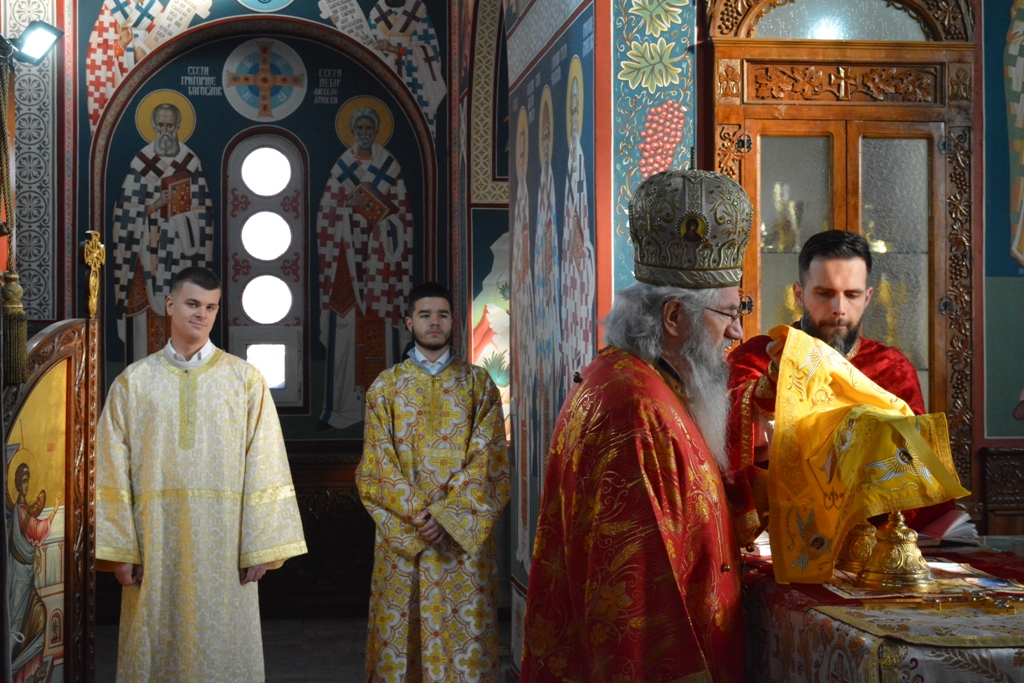Његовом Високопреосвештенству саслуживали су: јереј Милан Стојковић, јереј Александар Ђорђевић и ђакон Саша Павловић.