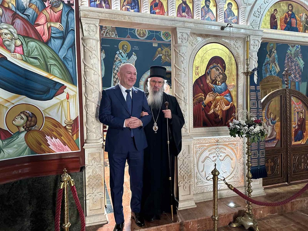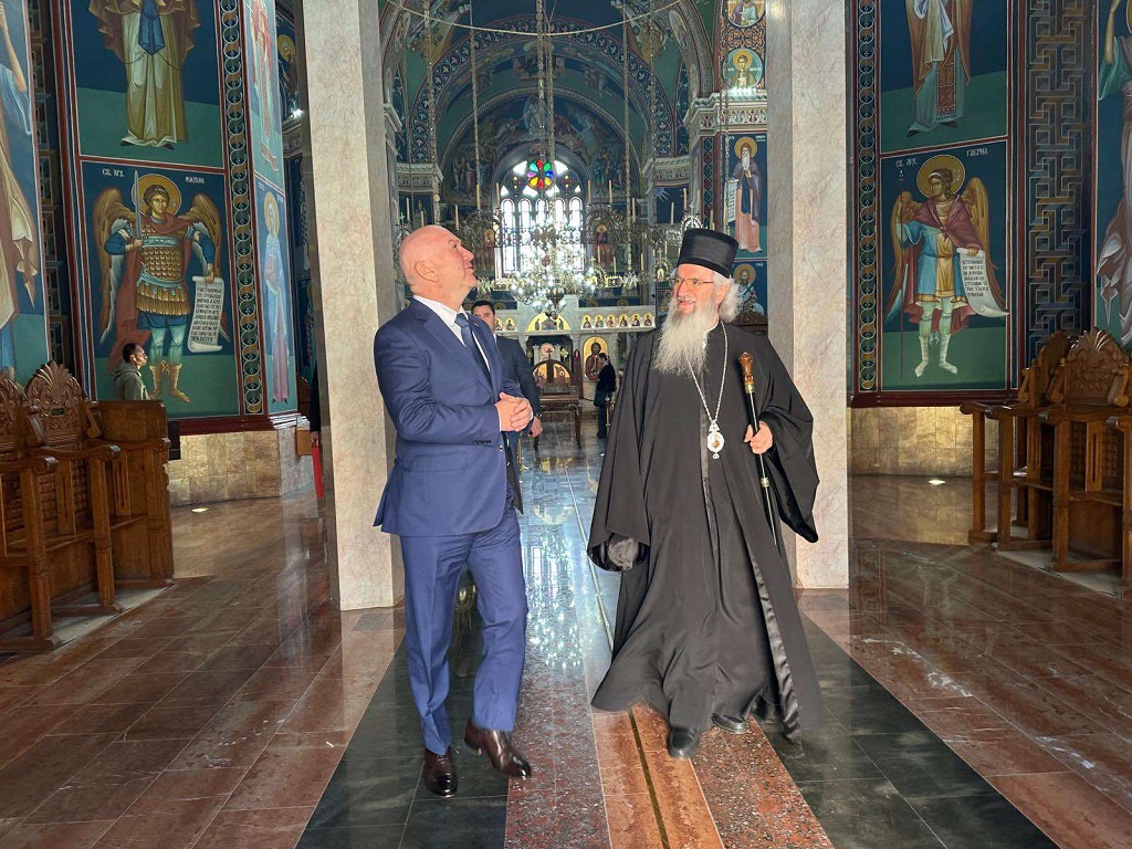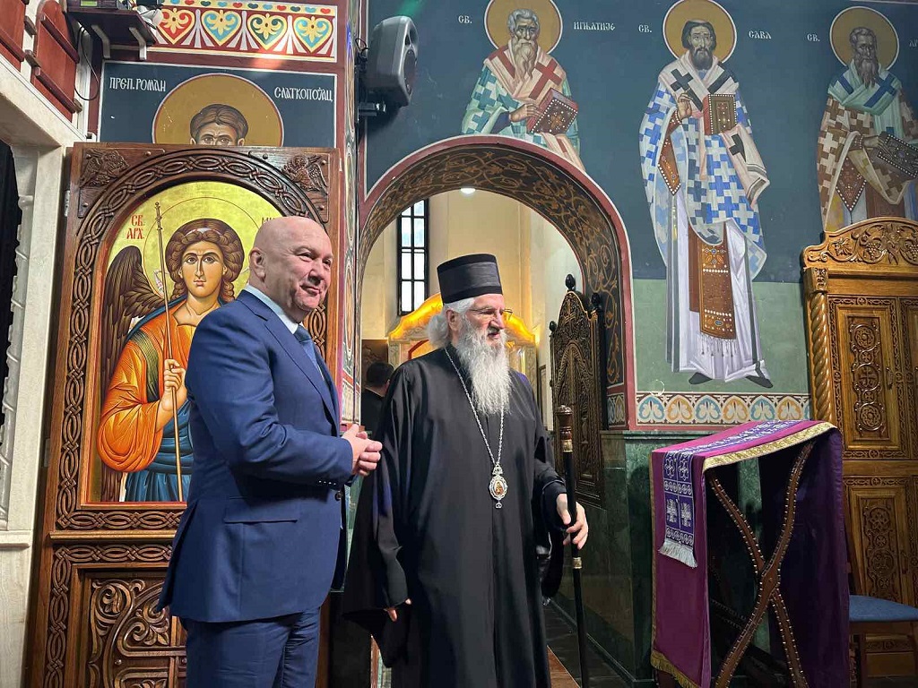 У склопу пријема у Епархијском дому, министар Поповић је обишао и Саборни храм Успења Пресвете Богородице у Крагујевцу, где се упознао са историјом овог храма, као и са његовим значајем за духовни живот верног народа Крагујевца и читаве Епархије шумадијске.