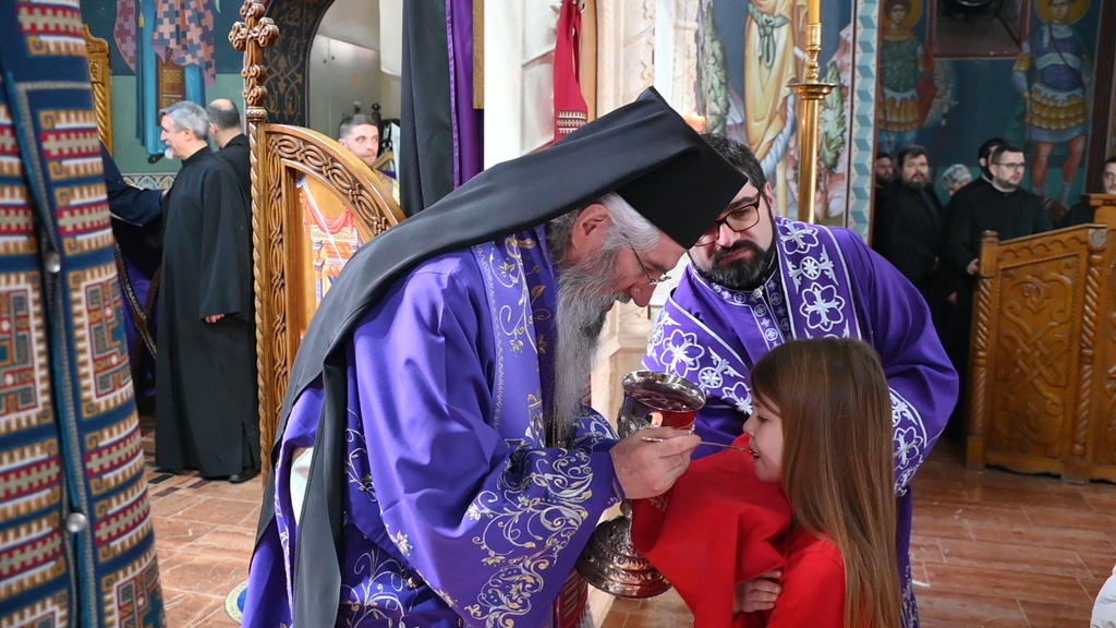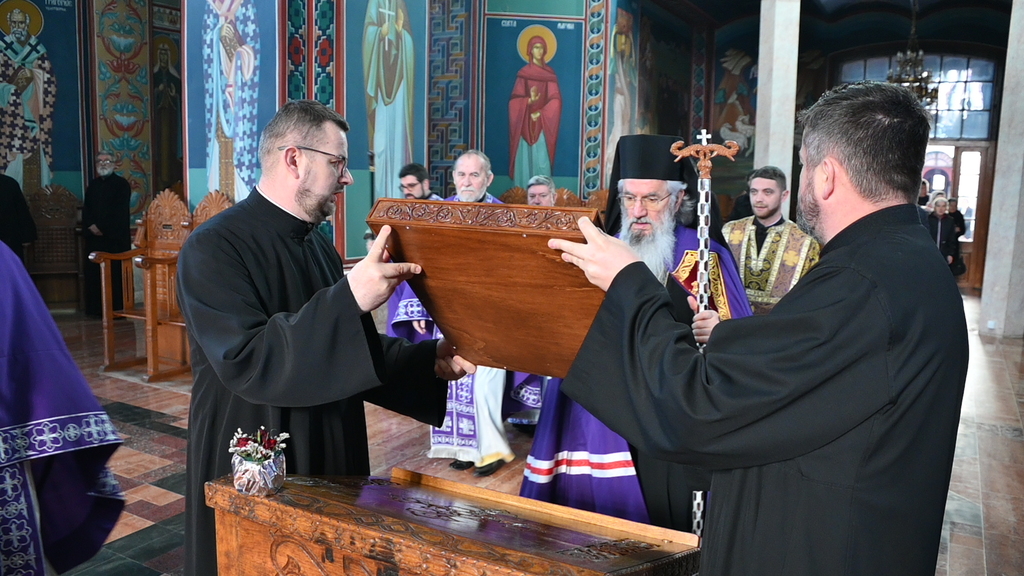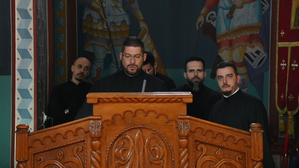 Стојимо данас у овој светињи пред лицем Бога живога, ослушкујући молитвену тишину Великог поста и доживљавајући истинску лепоту православља у Литургији Пређеосвећених дарова. Речима је немогуће исказати, али је срцем могуће осетити и доживети тајанствени додир неба и земље, и пролеће душе које већ назиремо у свој његовој лепоти и радости васкрсења. Животворна крв Христова већ двадесет векова тече из његовог ребра, и са Голготе се слива у свету чашу из које се дарује нама као скупоцени дар којим се вечност задобија и Царство Божије предокуша.