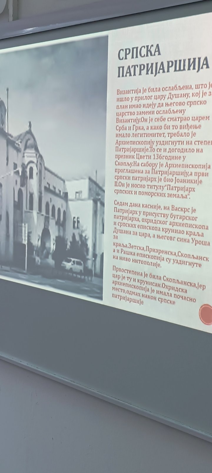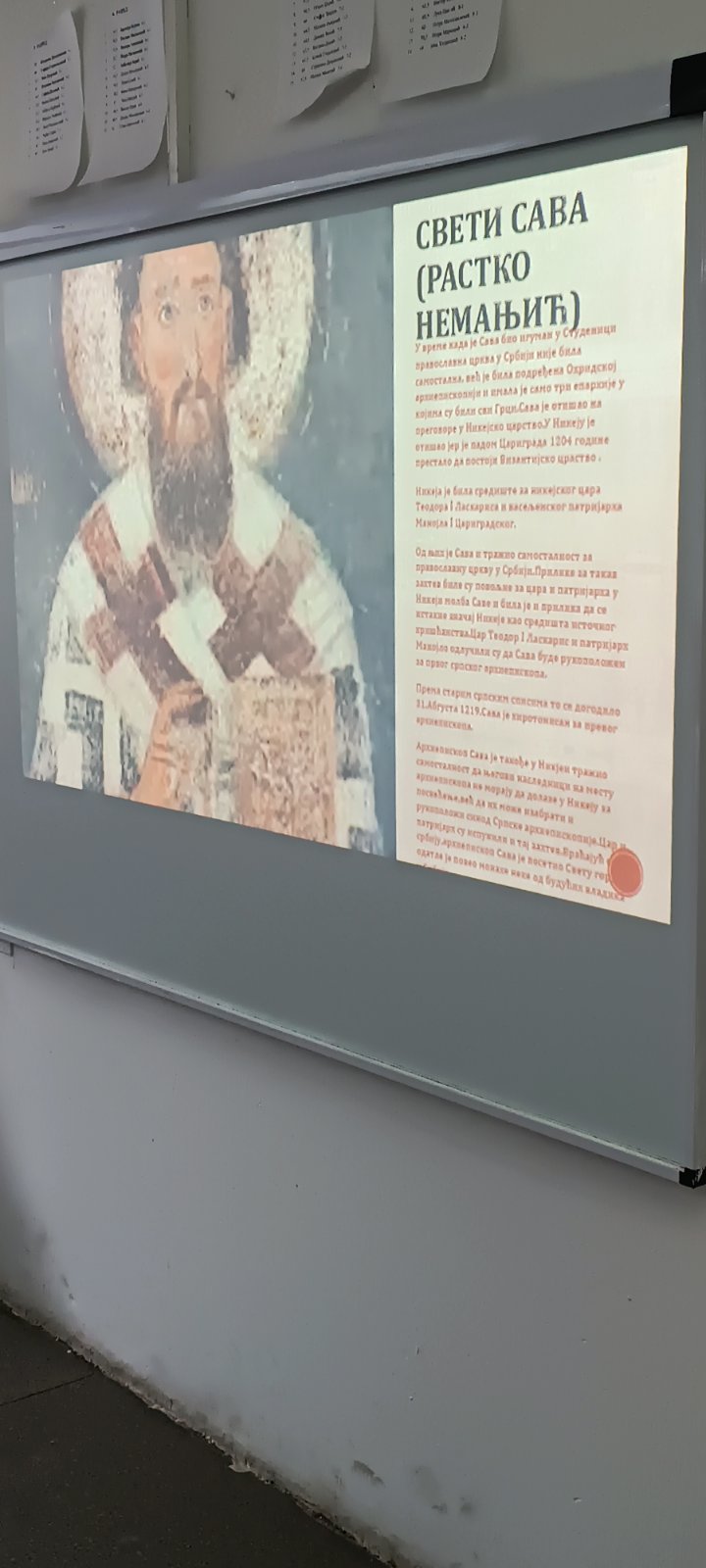 Час је био јединствена прилика да ученици темељно осветле чињенице о нераскидивој вези државе и цркве у периоду Немањића од великог жупана Стефана Немање до цара Уроша Нејаког уз обиље фотографија. Говорило се о настанку Жичке архиепископије и каснијој успостави Пећке патријаршије и о њиховом значају. Било је речи о Св. Јоаникију, последњем архиепископу и првом патријарху српском, о икони Богородице Тројеручице и о томе како је она постала светиња српског народа, као и о свим Немањићима са нагласком на Св. Сави и Св. краљу Милутину, те његовим задужбинама. Објашњен је значај везе и сарадње цркве и државе као и свим аспектима које та сарадња подразумева, како током историје, тако и данас. Ученици су пред крај часа постављали конструктивна питања на које су добили одговоре својих предавача.