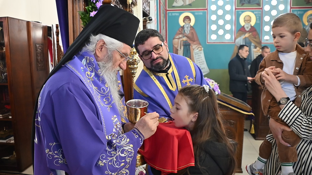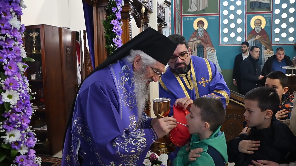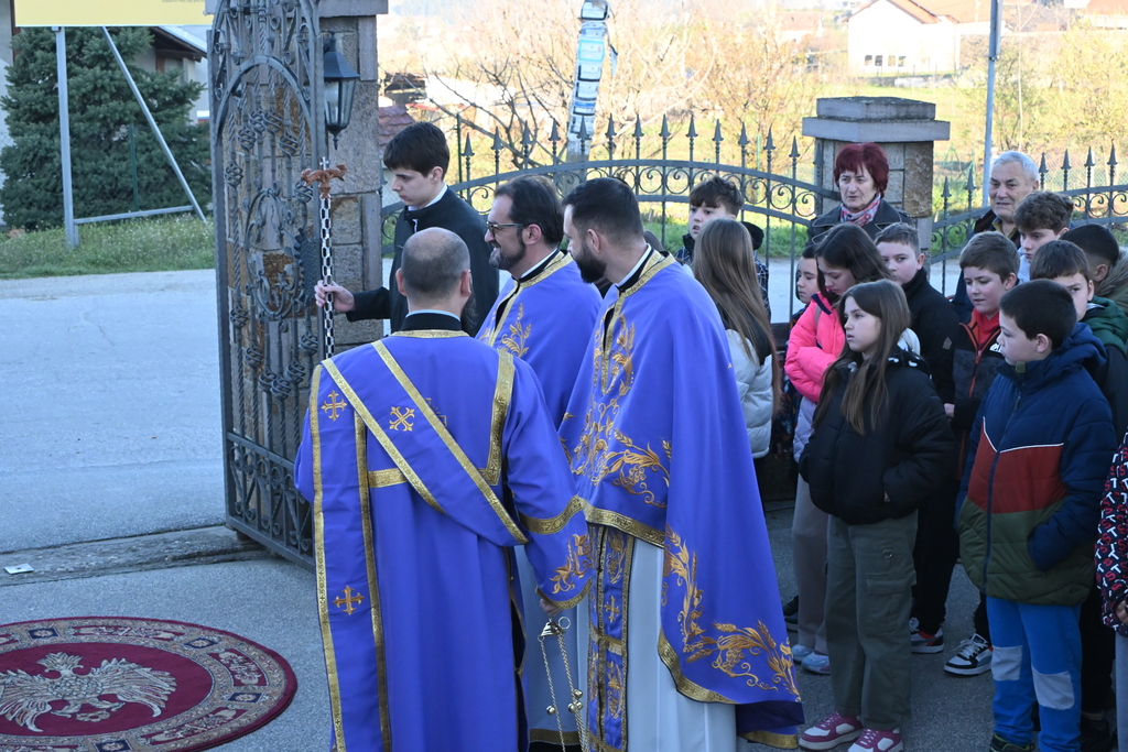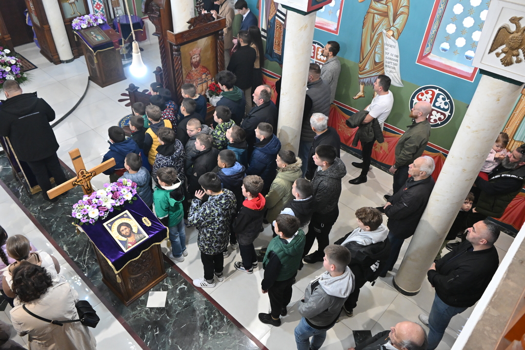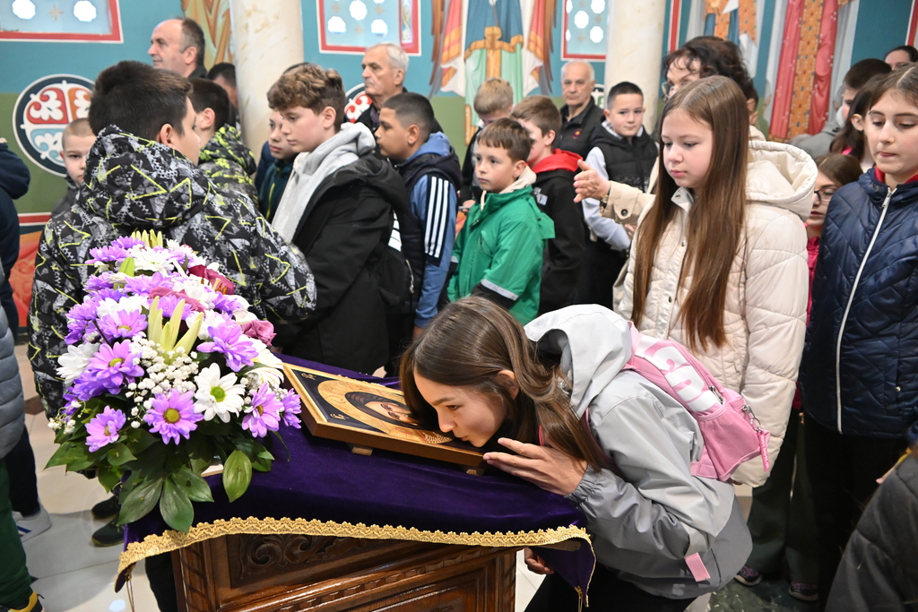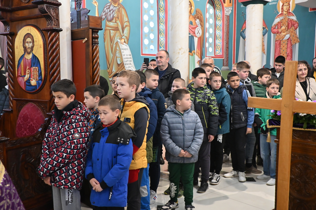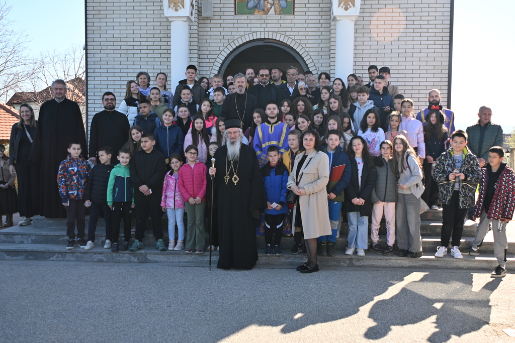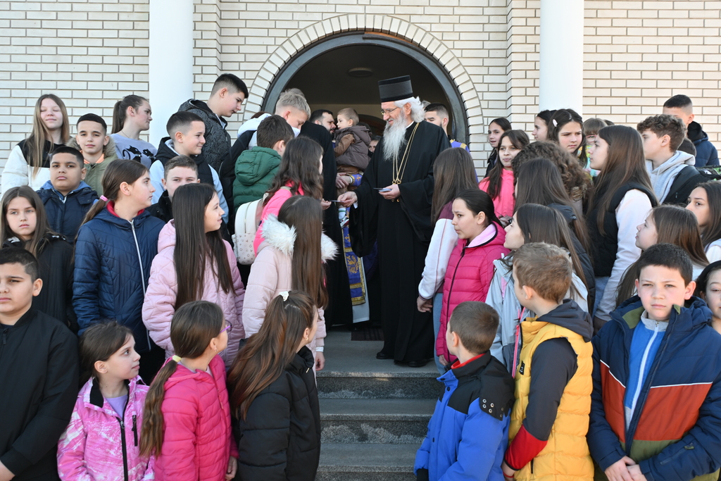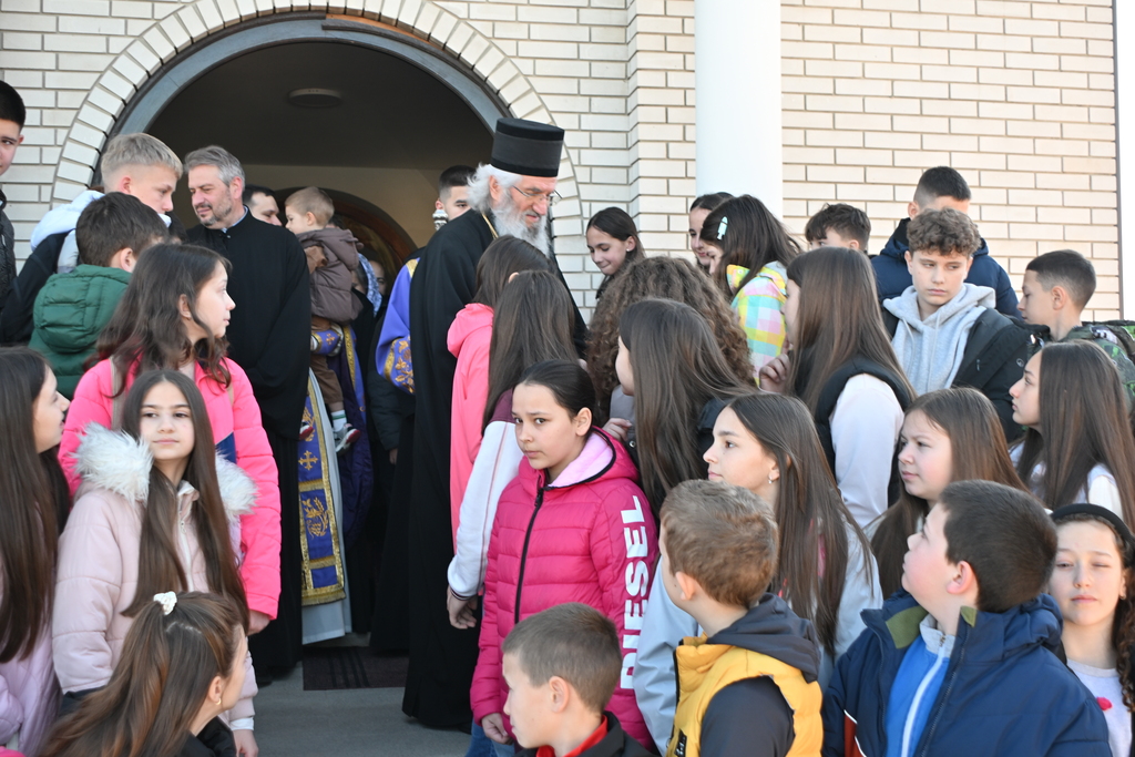 По завршетку Свете литургије, Високопреосвећени митрополит је благословио верни народ као и децу са веронауке са њиховом вероучитељицом Иреном, поделивши им иконице.