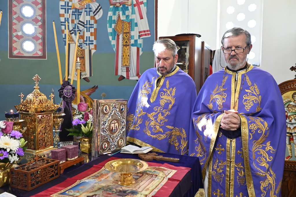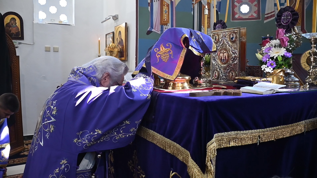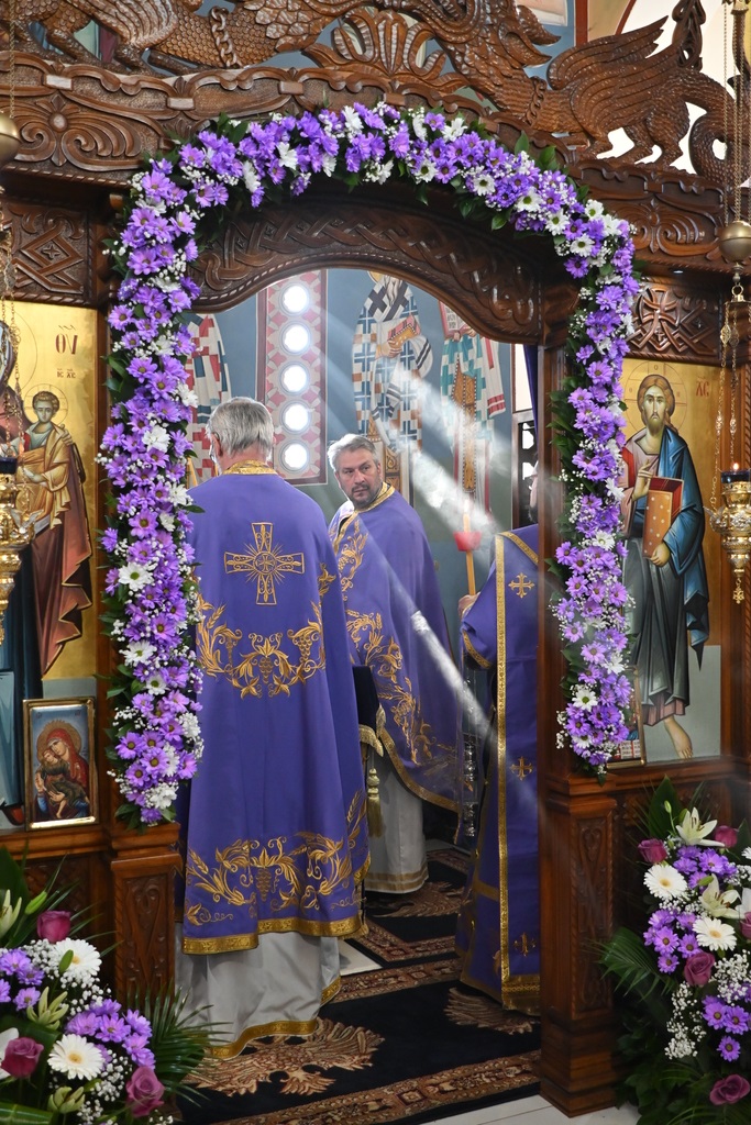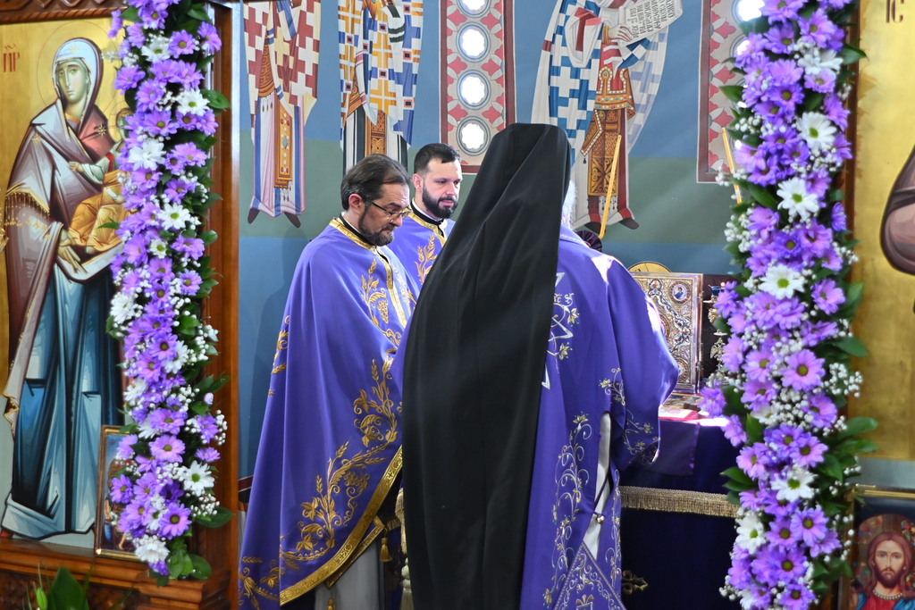 Високопреосвећеном митрополиту саслуживао је архијерејски намесник лепенички, протојереј Срећко Зечевић, протођакон Иван Гашић, као и братство овог светог храма.