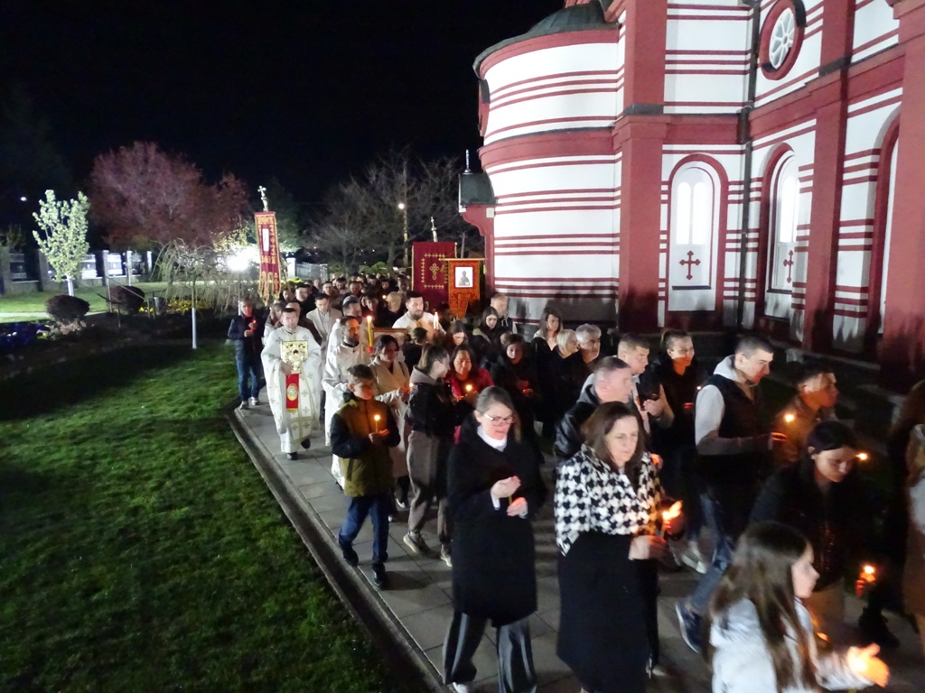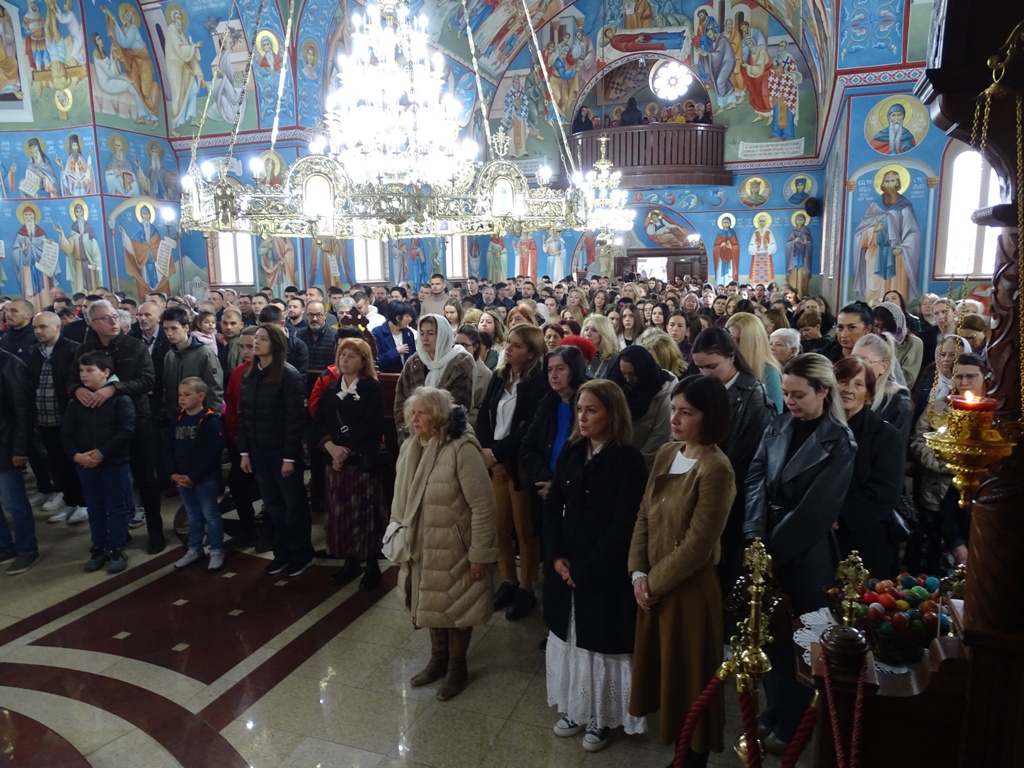 Верници су заједно са својим породицама испунили храмове, желећи да у заједништву прославе овај „празник над празницима“. Током Свете Литургије, старешина храма Светих апостола Петра и Павла, протојереј-ставрофор Мићо Ћирковић, прочитао је васкршњу посланицу Његове Светости Патријарха српског Господина Порфирија. У посланици је Патријарх упутио честитке поводом празника и поучио нас смислу и значају овог великог празника и значају мира за свакога човека на овој планети.