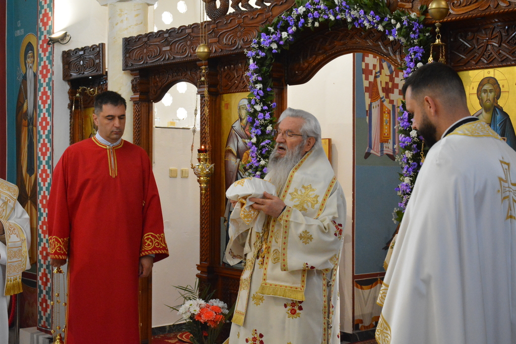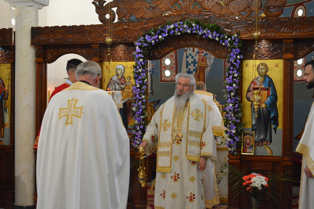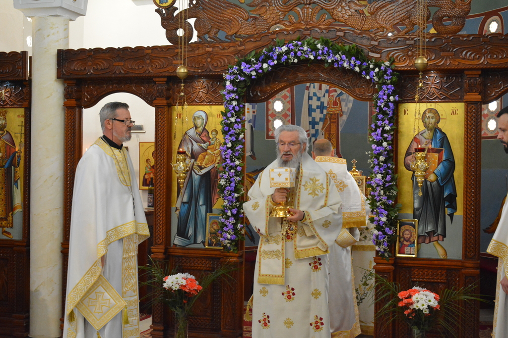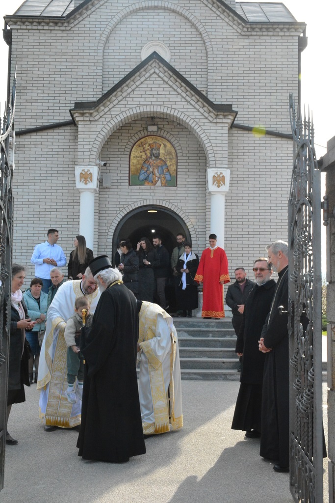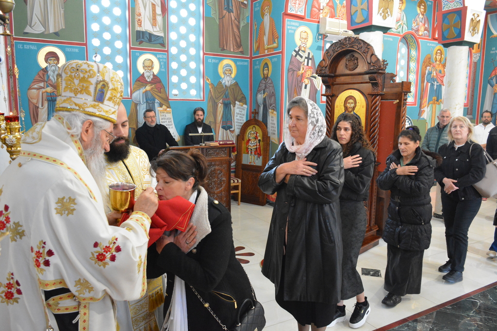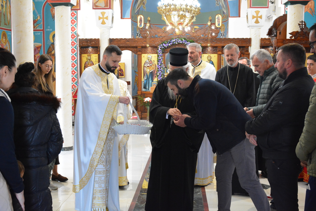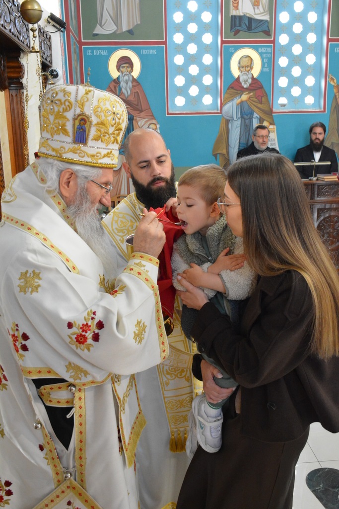 По завршетку Свете литургије, Високопреосвећени митрополит је благословио верни народ, поделивши им иконице и васкршња јаја.