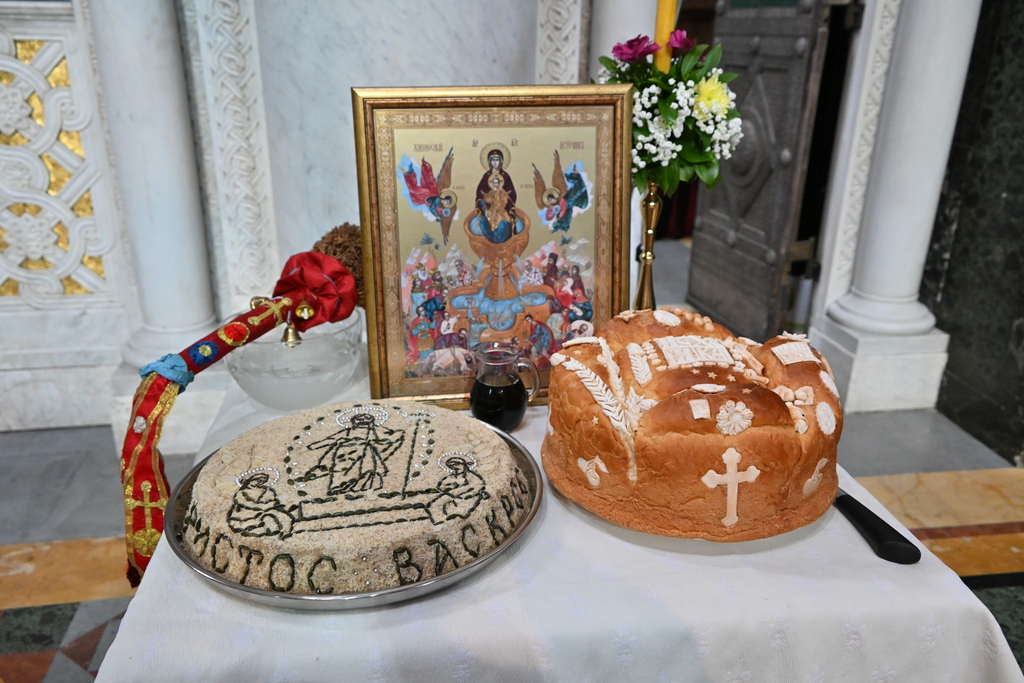 Зато, браћо и сестре, ми данас, сабрани на Светој Литургији, духовно се пренесимо ка том извору и замолимо Пресвету Богородицу да нам подари здравље и духовну снагу, да можемо пребродити искушења која нас сналазе. Али треба да се запитамо да ли нас искушења сналазе и због слабости наше вере. Када спомињемо Пресвету Богородицу, треба да схватимо да је она радост за све верне, за оне који верују у Сина њенога и у Бога. Она, која је најближа Христу Спаситељу, брине се о својој верној деци. Она је Мајка Божија, али и Мајка наша. А мајка се брине о својој деци, и деца треба да се брину о својој мајци. Најтоплије је крило мајчино, а крило Мајке Божије шире је од неба и земље. Зато у храмовима видимо Пресвету Богородицу са натписом „Шира од небеса“. Она је у себе примила Онога кога не може да обухвати васељена. Сместила је у себе несместивога Бога кроз смирење и љубав. И то смирење ју је учинило Богородицом. Зато је ми вековима називамо преблагословеном и пречистом Мајком Божијом. Коме Пресвета Богородица подари свој благослов, тај, ако је грешан, оправдаће се, ако је слаб, оснажиће се, ако је пао, устаће. Ко је жалостан, обрадоваће се. Јер ко може да обрадује више од мајке. Али када деца не узвраћају љубав, знају да нанесу бол. Ипак, љубав мајке је већа од сваког бола. Зато треба да схватимо ако смо својом нељубављу повредили своју мајку, а нарочито Мајку Божију, треба да се покајемо. Благо ономе ко прими благослов Пресвете Богородице. Она и данас служи Цркви и притиче у помоћ вернима који јој се моле. Када се нађемо у невољи, прво призивамо мајку, јер је мајка светиња. Зато призовимо Пресвету Богородицу и потражимо њен благослов. Много је благослова у Мајци Божијој, само треба да осетимо њено присуство. Она нам помаже на разне начине, кроз чудотворне иконе и свете изворе. Иако смо пали и упрљани, постоје духовни извори да се очистимо. Јер сви смо грешни, али имамо Мајку Божију и њену љубав. Зато јој приђимо и замолимо је. Када се молимо, кажемо: Господе, спаси нас, али се обраћамо и Пресветој Богородици: Пресвета Богородице, спаси нас. За те речи није потребна наука, већ чисто срце испуњено вером, љубављу и надом.