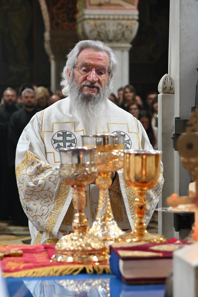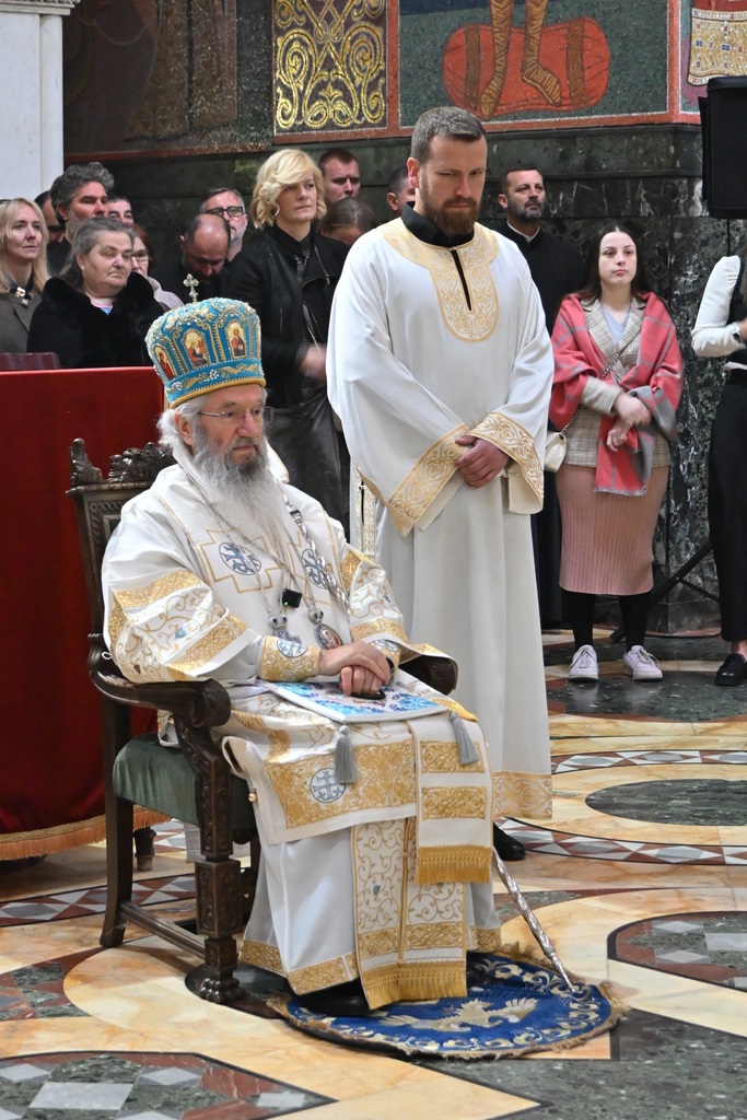Митрополиту су саслуживали свештеници и свештономонаси епархије шумадијске.