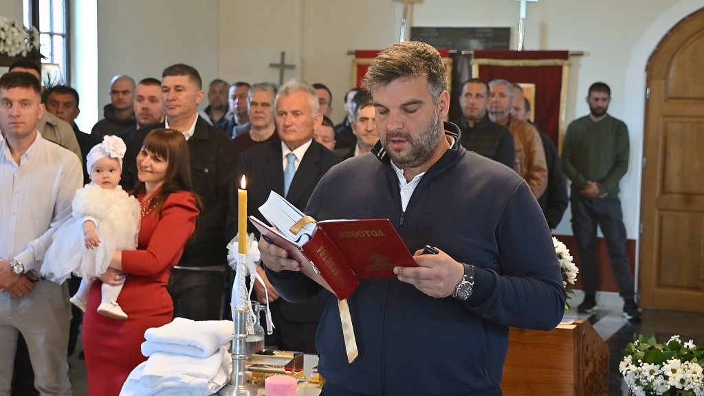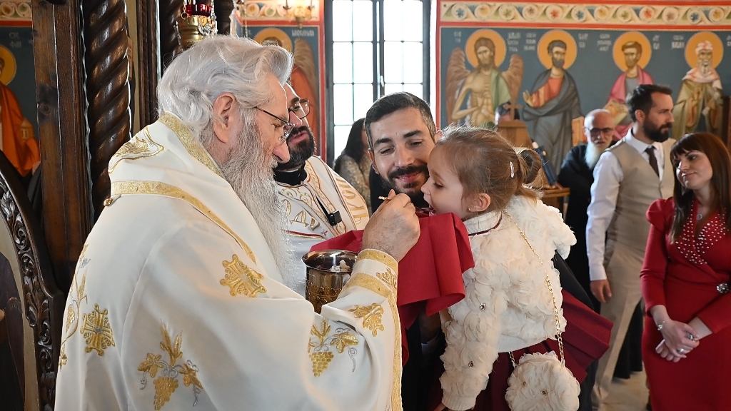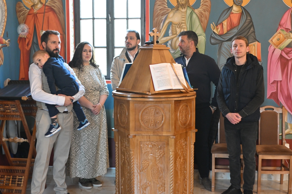 И ето ми данас овде, браће и сестре, поред те велике радости у овоме храму, у којем служимо Свету Литургију, а Литургија је радосна, радост и истина, ми данас такође имамо једну велику и заиста могу казати свету радост, зато што смо данас крстили малу Марту. И она је данас крштењем постала члан Цркве. Ово је њено духовно рођење. Данас, кроз Свету Тајну крштења, наша Марта примила је управо тај небески дар. Духа Светога. Запечаћена је. Печат дара Духа Светог. Помазана је Светим миром, које треба да симболише оно што каже апостол Павле, да су хришћани мирис Божији. И зато помазујемо новорођенче да мирише душа новорођенога. Јер дете, шта је дете? Свети Јустин Ћелијски каже, дете је парче неба на земљи. Оно мирише. Није огреховљено. Није искварено. Нема гордости. Нема сујете. Него је над дететом дах Духа Светог. И зато, браћо и сестре, да се помолимо Богу, да Бог учврсти нашу Марту у веру и православљу. Да је, браћо и сестре, одржи, да је онај анђео које је данас примила, да је он води и руководи. Данас преузимају дужност не само родитељи на првом месту, родитељи наше Марте, него и кум. Али није само кум, и родитељи. Сви ми данас смо предузели на себе одговорност за њено спасење. Јер смо сви одговорни једни за друге, браћо и сестре. И немојмо, то често говорим кад крштавам, немојмо да се заваравамо па да кажемо ма ово је дете мало, шта оно зна, шта ћу ја пред њим да радим, шта ћу да говорим, како ћу да се понашам. Немојте тако, браћо и сестре. Немојмо тако боље рећи. То дете, како каже Свети Јован Златоусти, његова је душа као сунђер. А шта ради сунђер кад га убацимо у воду? Купи воду. Па после цеди, што бисмо рекли. Зато смо одговорни, али зато да се молимо Богу да њен улазак данас у Цркву буде на њено спасење и спасење оних који су око ње. Да јој Свето причешће којим ће се она данас причестити, браћо и сестре, буде на спасење.