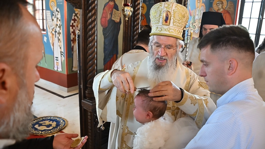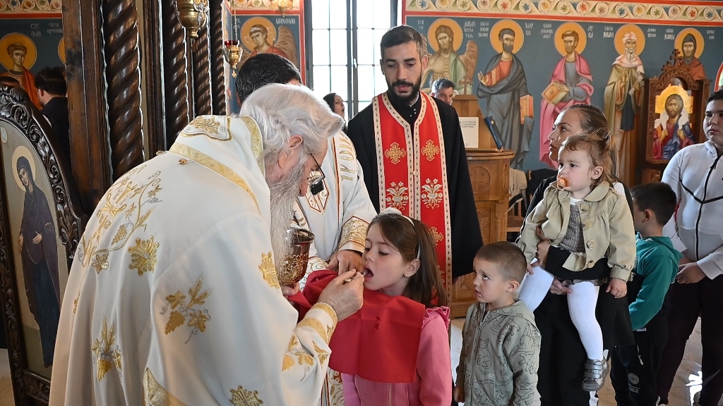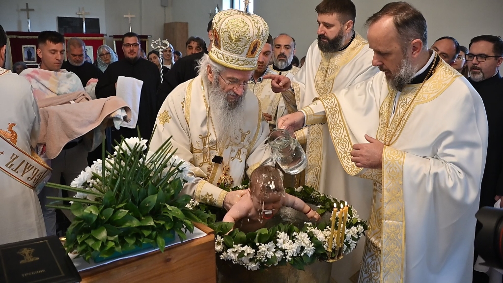 Ви сте видели, ми смо данас Марту крстили у току Свете Литургије. То је стари, древни обичај хришћански. Да све увире и све треба да извире из Литургије. И данас, у ствари, поред све то што је она примила дарове Духа Светога и што се одрекла, сатане, данас печат њеног крштења је управо причешће. И зато вас молим, настојте да своје крштавате у оквиру Литургије. Дуго и дуго времена је било па се у току Литургије и крштавало, и венчавало, и опевавало, браћо и сестре. Јер Литургија, она повезује браћо и сестре и прошлост, прошло време и садашње време и претвара га у вечност. А ево, ми данас служимо Литургију. И овај ће свет да постоји све док се у овоме свету врши Света Литургија.