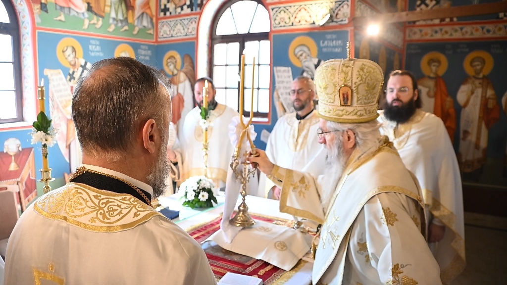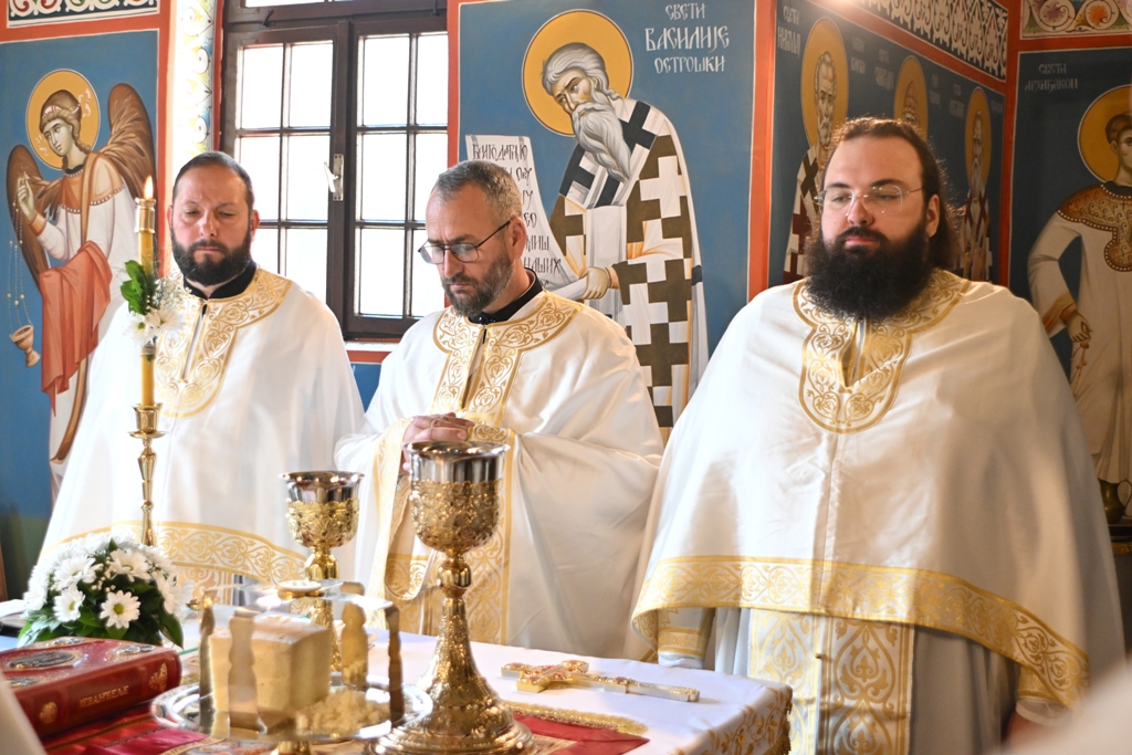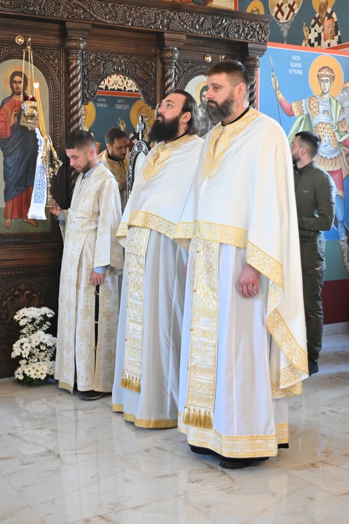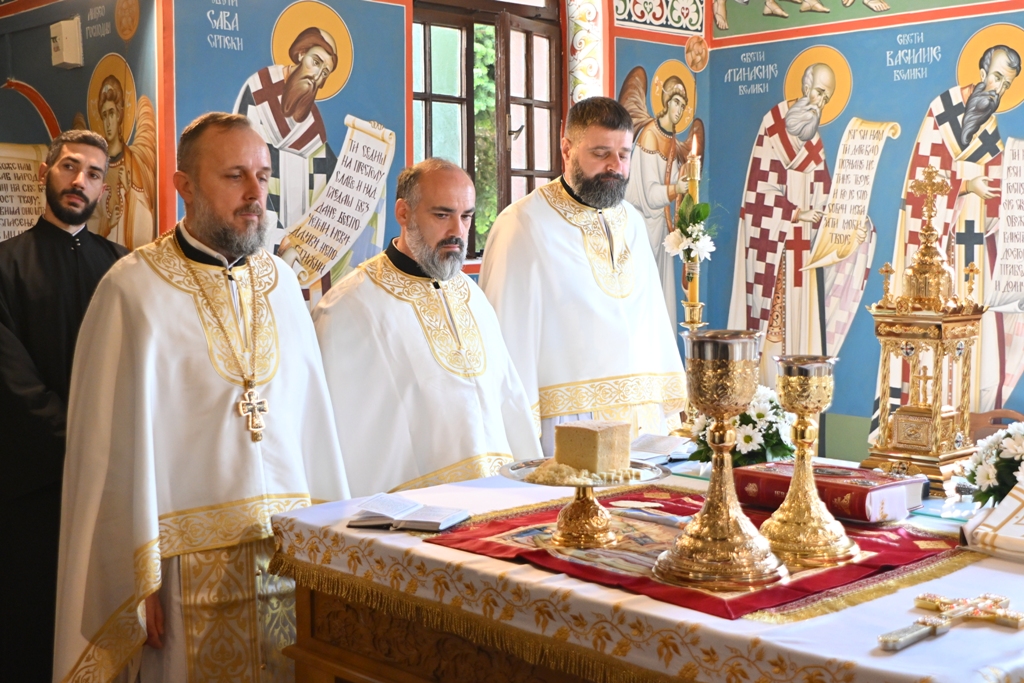 На Светој Литургији нашем Архијереју саслуживали су: јеромонах Сионије (Зорић), архијерејски намесник младеновачки протојереј-ставрофор Жељко Ивковић, протојереј Ратко Аврамовић, протонамесник Ненад Марковић, јереј Иван Ненадовић, јереј Милутин Гашевић, протођакон Иван Гашић и ђакон Младен Марић.