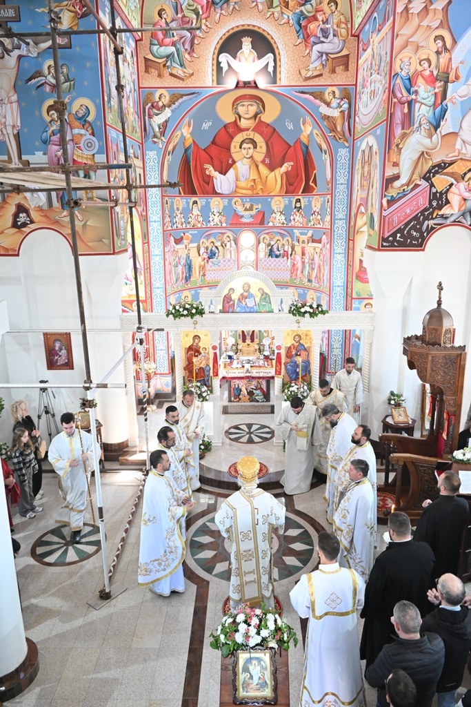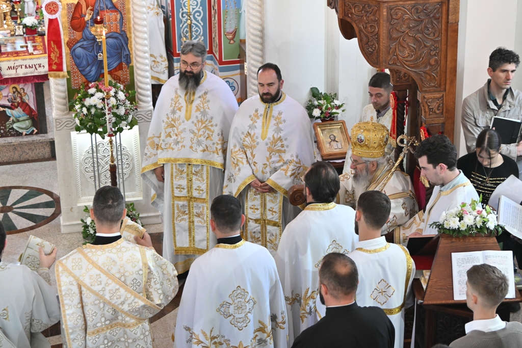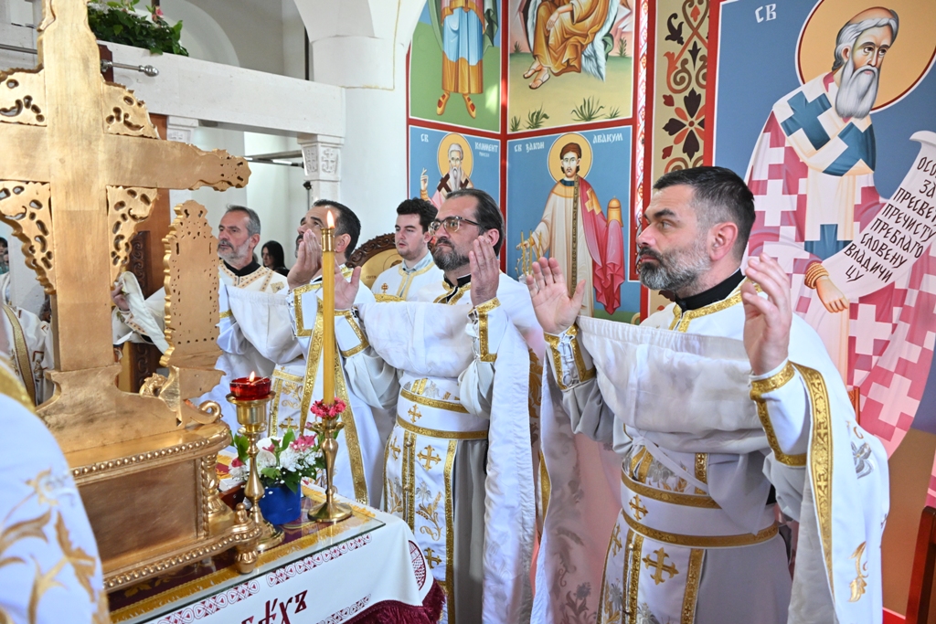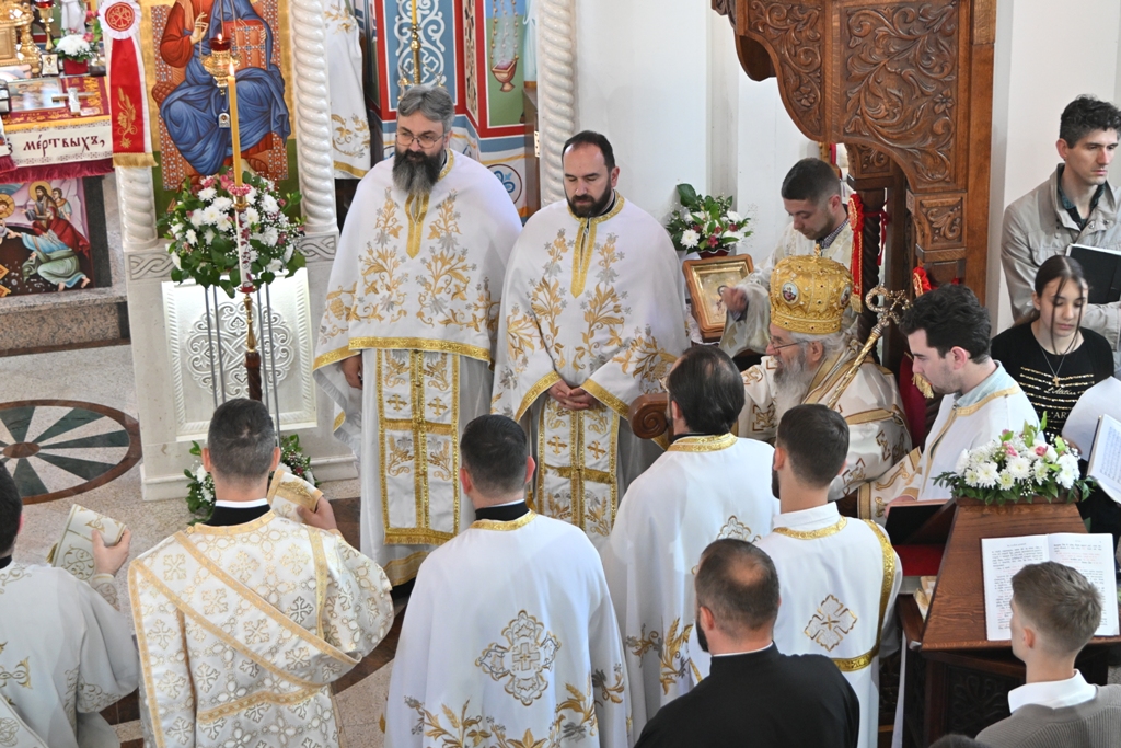 Архијереју су саслуживали протојереј ставрофор др Зоран Крстић, протојереј ставрофор Душан Илић, протојереј Дејан Марковић, протојереј Срећко Зечевић, протонамесник Ненад Милојевић, јереј Милош Коцић, протођакон Мирослав Василијевић, протођакон Иван Гашић и ђакон Стефан Јанковић.