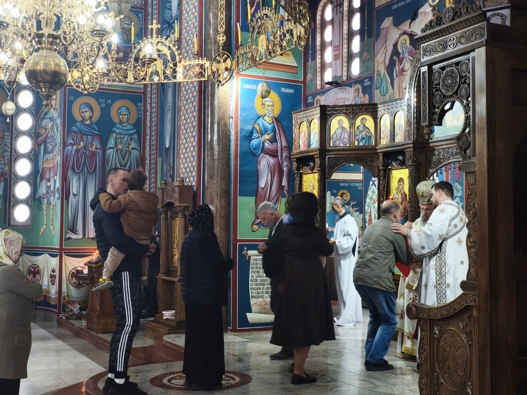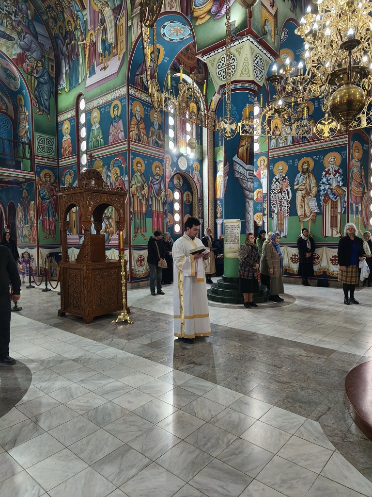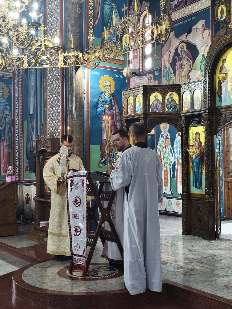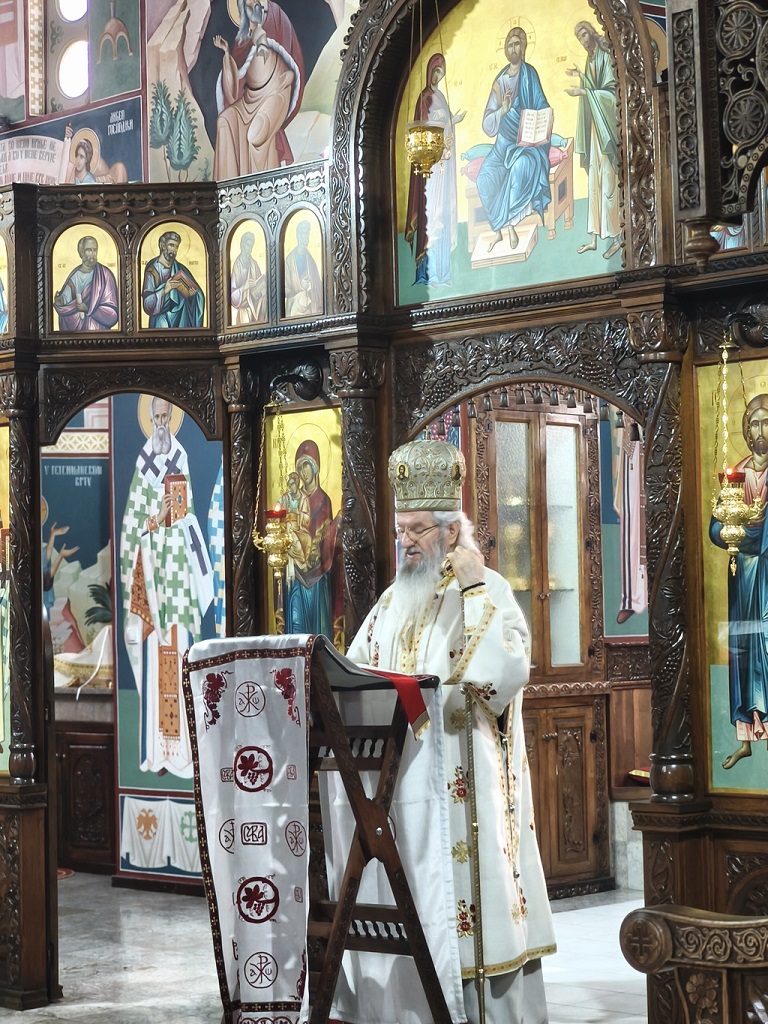 За певницом су појали оци храма Светога Саве са верним народом. По прочитаном Јеванђељу надахнутом беседом се обратио верном народу Митрополит Јован: