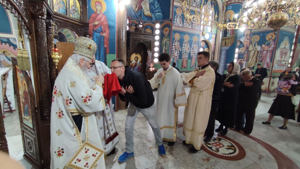 У наставку Свете Литургије Високопреосвећени Митрополит је причестио верни народ и поделио иконице Господа Исуса Христа, као благослов и молитвено сећање.