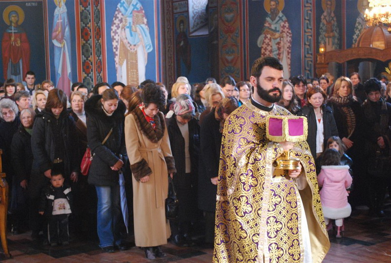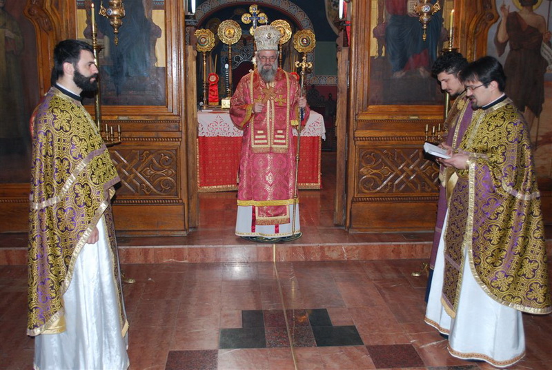 Његово Преосвештенство Епископ шумадијски Господин Јован, служио је свету Архијерејску Литургију на дан преподобномученице Евдокије 14. марта, у Саборном храму Успења Пресвете Богородице у Крагујевцу, уз саслужење свештенства Саборног храма.