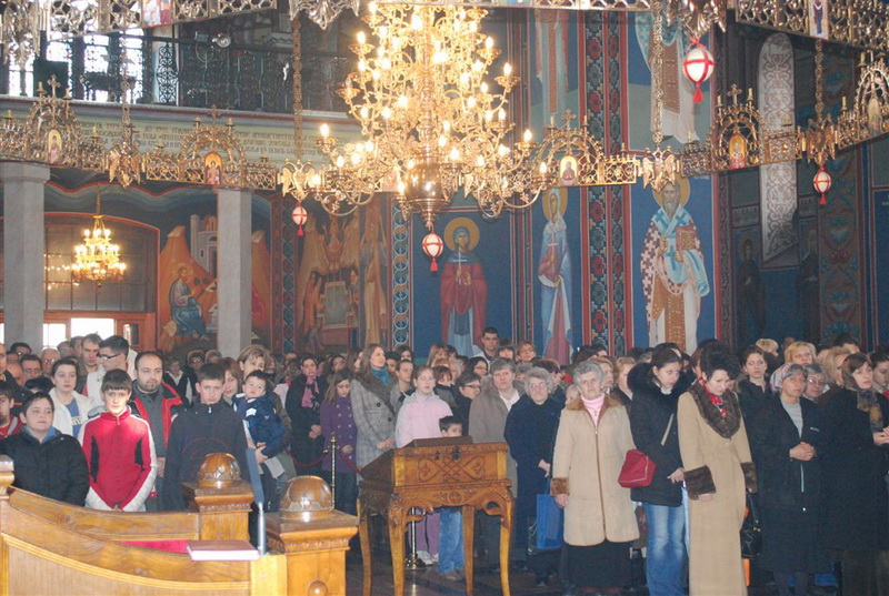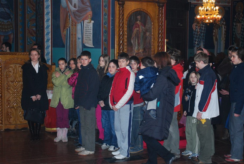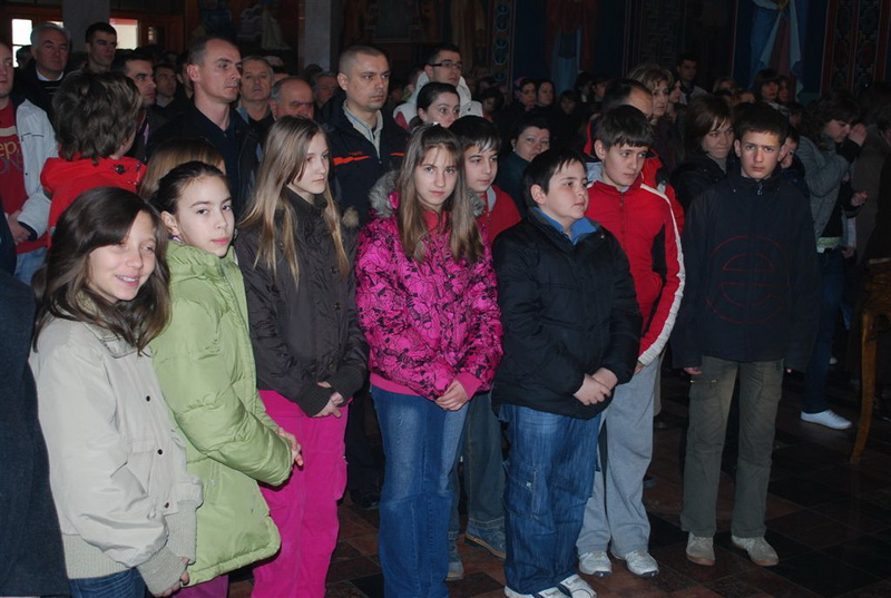 Верни народ Крагујевца сабрао се, у Саборном храму благодатно–евхаристијски, у заједници Једнога Духа, најпре се сјединивши једни са другима и са свима кроз заједничарење у једноме Хлебу живота и у једној Чаши благослова. Радост евхаристијског сабрања осетили су ученици петог разреда Основне школе „Мома Станојловић“ који су своје учешће на Литургији запечатили приступивши Светом Причешћу. После Евхаристијског сабрања ученици су се окрепили послужењем, пецивима и соком у парохијском дому Саборног храма.
