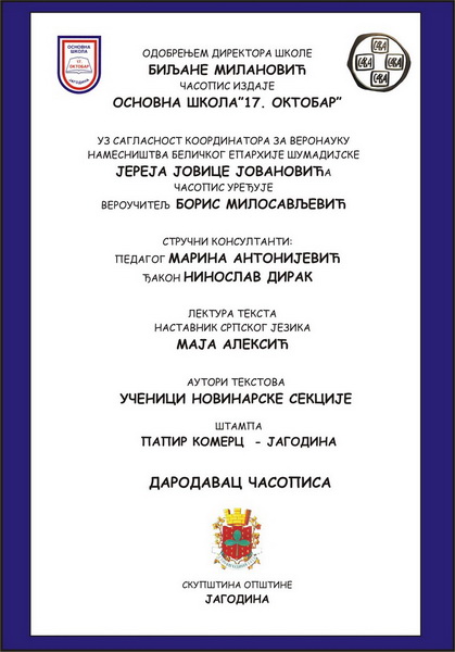 На крају треба истаћи да за часопис пишу деца која похађају наставу веронауке, док са друге стране он је показатељ одличне организације и сарадње свих структура у школи, као и важности и улоге веронауке у образовању и васпитању деце.