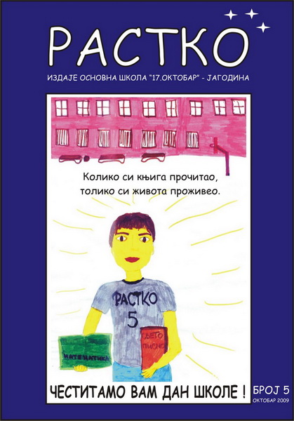 ШКОЛСКИ ЧАСОПИС “РАСТКО”Kао и претходних, и ове године, поводом Дана школе, 17. октобра 2009. Године, из штампе је изашао пети број школског часописа „Растко“, који издаје Основна школа “17. октобар“ из Јагодине.