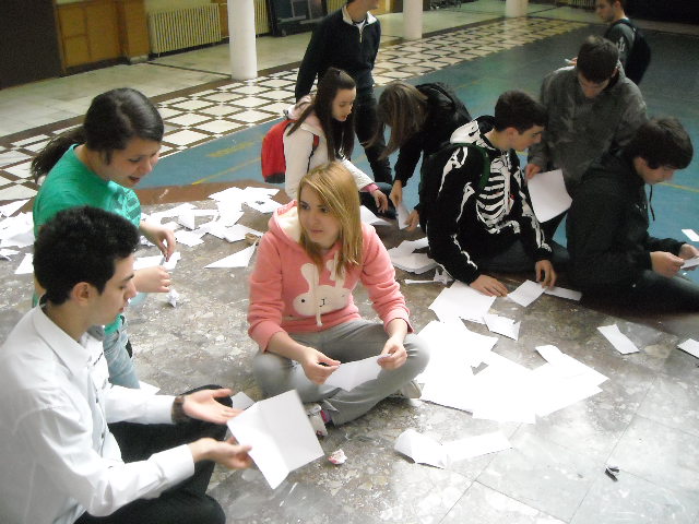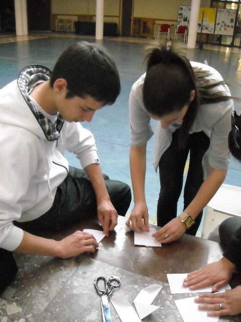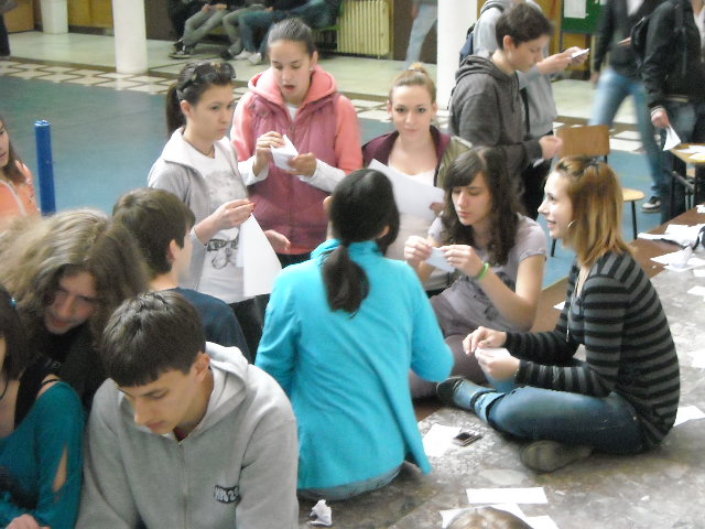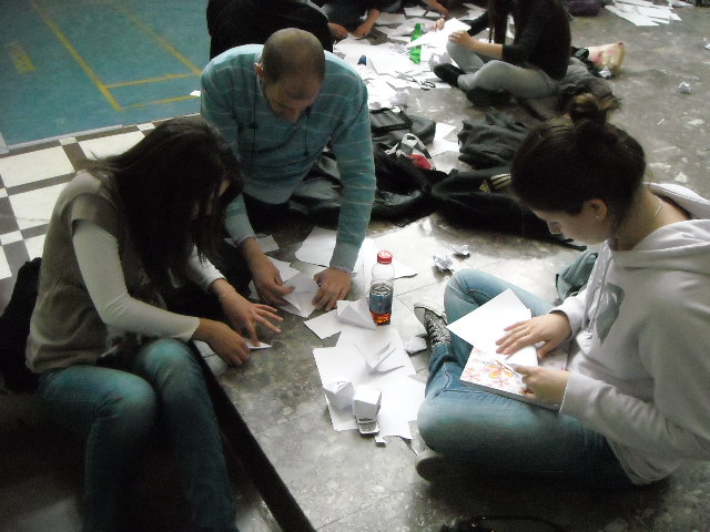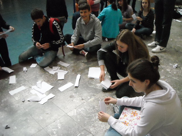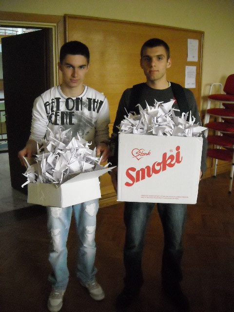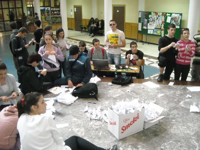 У холу Друге крагујевачке гимназије у организацији секције за Верску наставу 07. 04. 2011. године организована је акција прављења 1000 папирних ждралова од папира древном јапанском оригами техником који су послати Јапану.