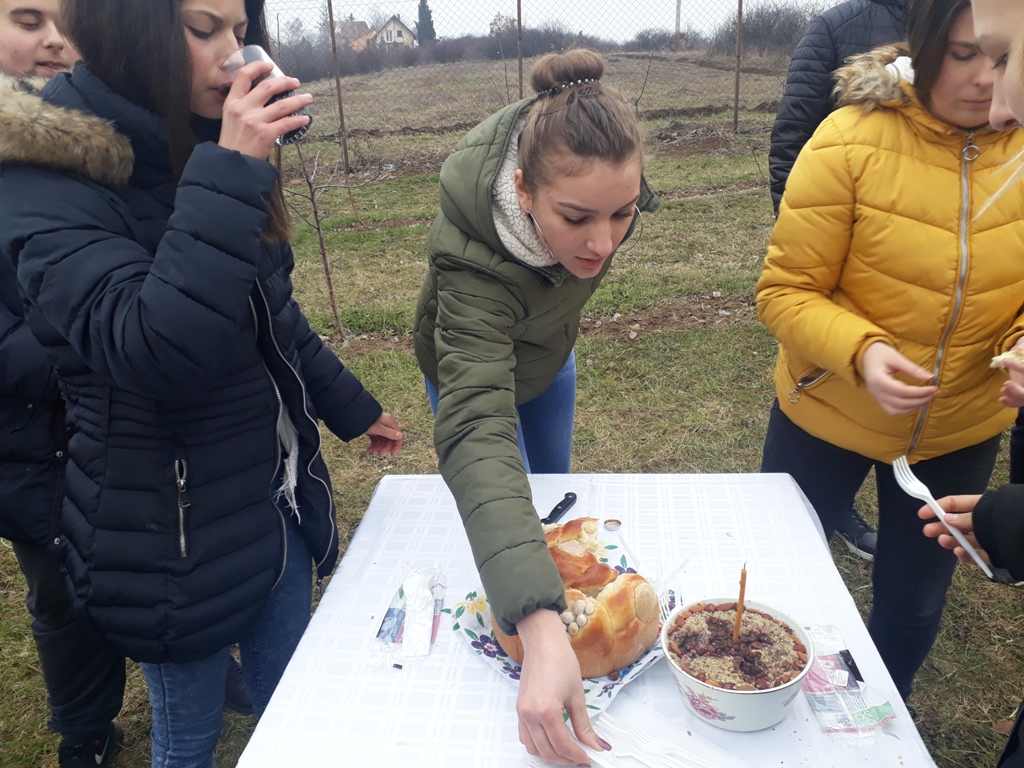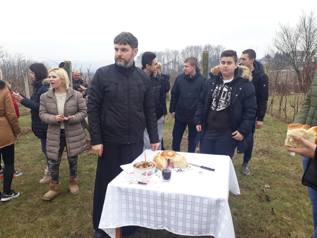 Као и ранијих година у школском воћњаку, изнад винограда пререзан је славски колач.