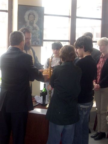 Александар Борота је принео усрдне молитве светитељу Сави, осветио и пресекао славски колач, пожелевши директору, наставном особљу и ученицима да славе свог патрона на много година.