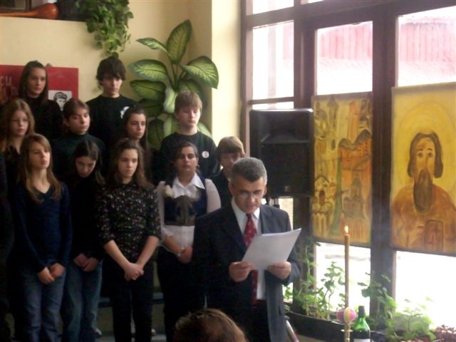 Директор школе Милан Мартиновић, се обратио присутнима речима: «Свети Сава је одредио језик којим говоримо, писмо којим пишемо, пут којим идемо. Има томе већ осам векова и тај пут и тај језик и то писмо нису изван нас него у нама и не можемо их изгубити ако не изгубимо себе. Савин прах је између нас. Свети Сава је први извадио личну карту српског народа – и од њега знамо ко смо, како се зовемо и коме припадамо.“