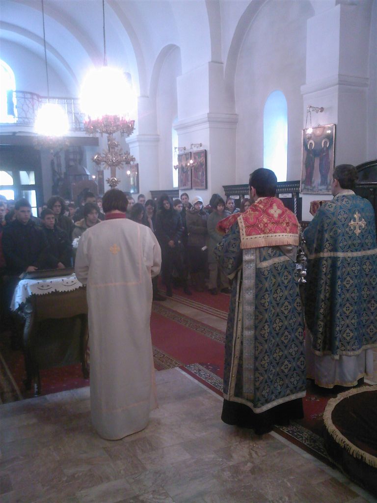 ImageУ Сирну суботу свештенство Старе Цркве и вероучитељи из Прве Крагујевачке Гимназије, Александар Мирковић и Гордана Јоцић окупили су своје ученике веронауке на Светој Литургији. Позиву својих духовних отаца и вероучитеља одазвало се преко 120 ученика.
