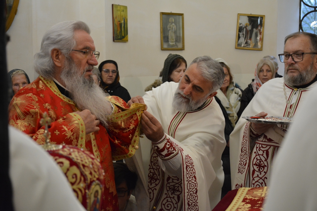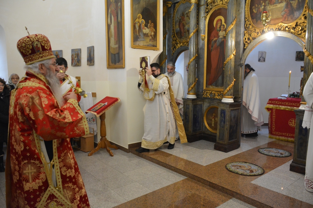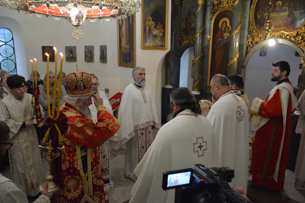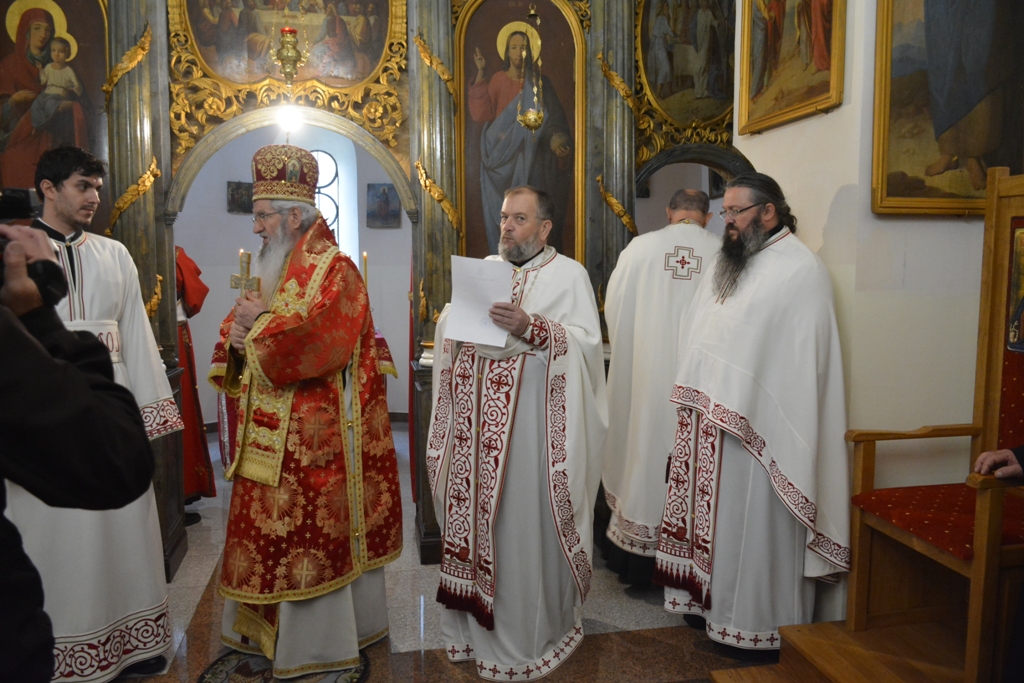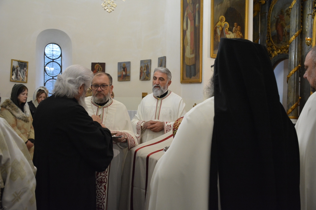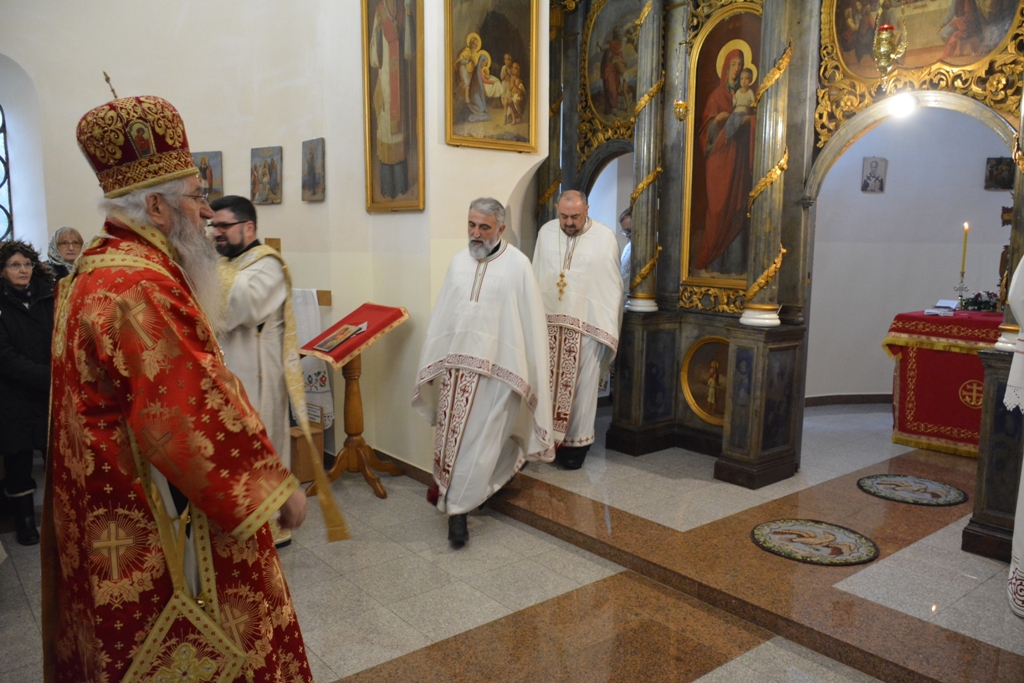 Високопреосвећеном саслуживали су протојереј-ставрофор Љубиша Смиљковић, протојереј-ставрофор Златко Димитријевић, јеромонах Серафим, протонамесник Горан Лукић, протођакон Иван Гашић и ђакон Бојан Миленовић.