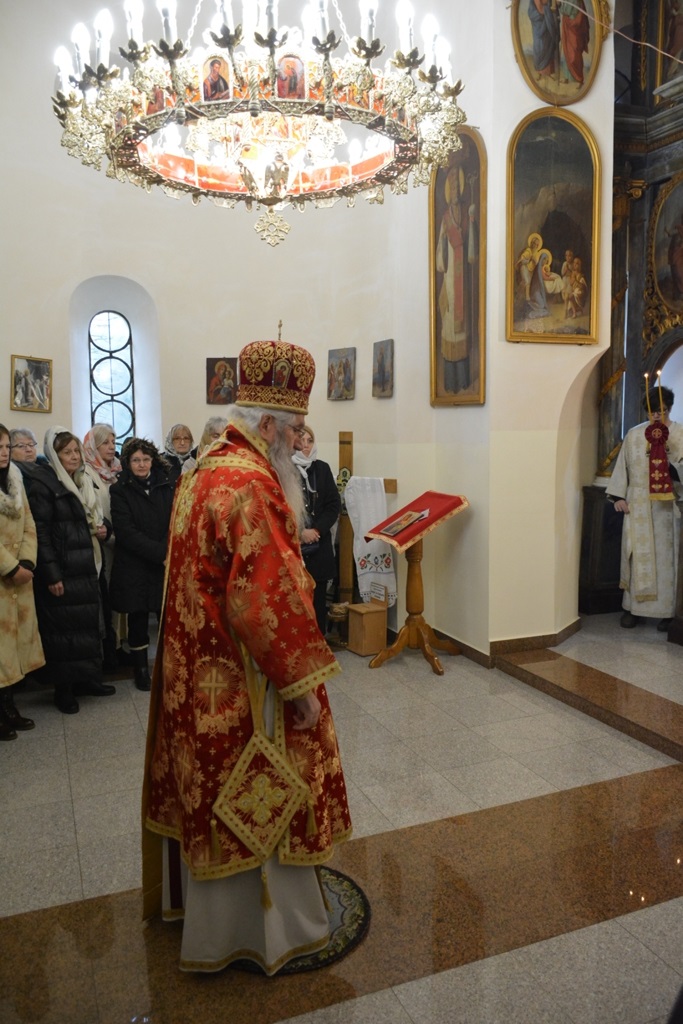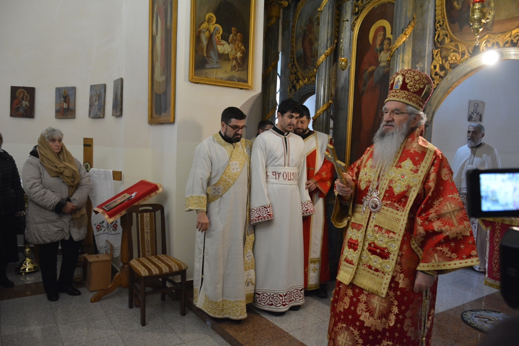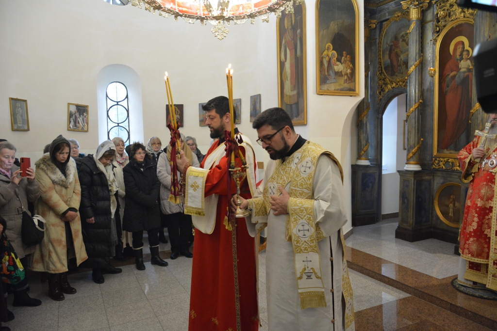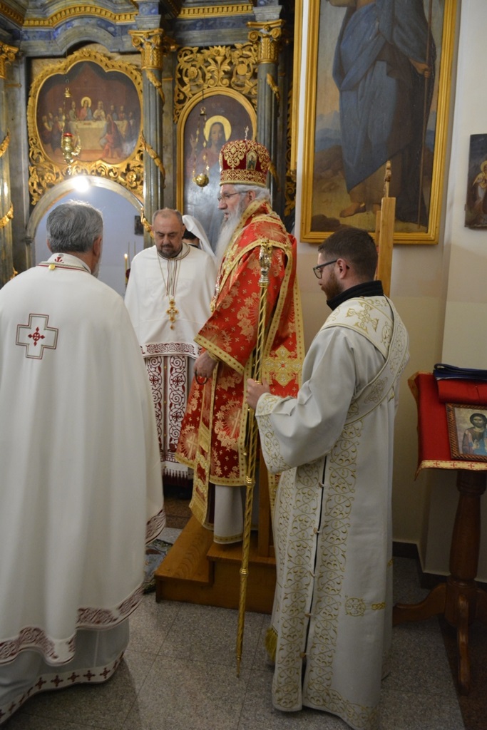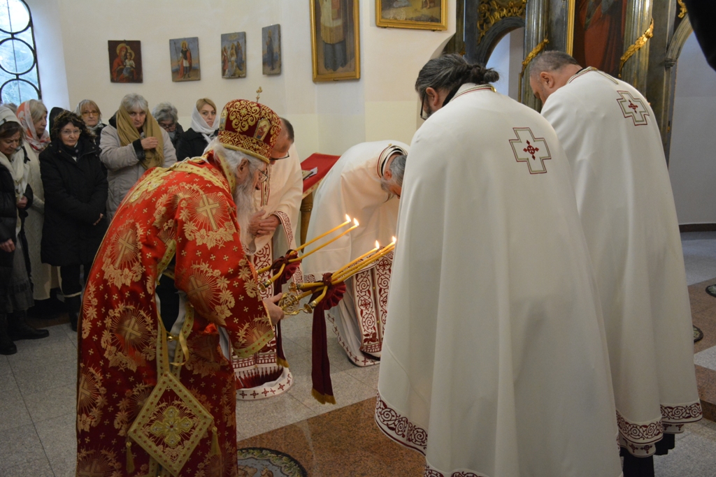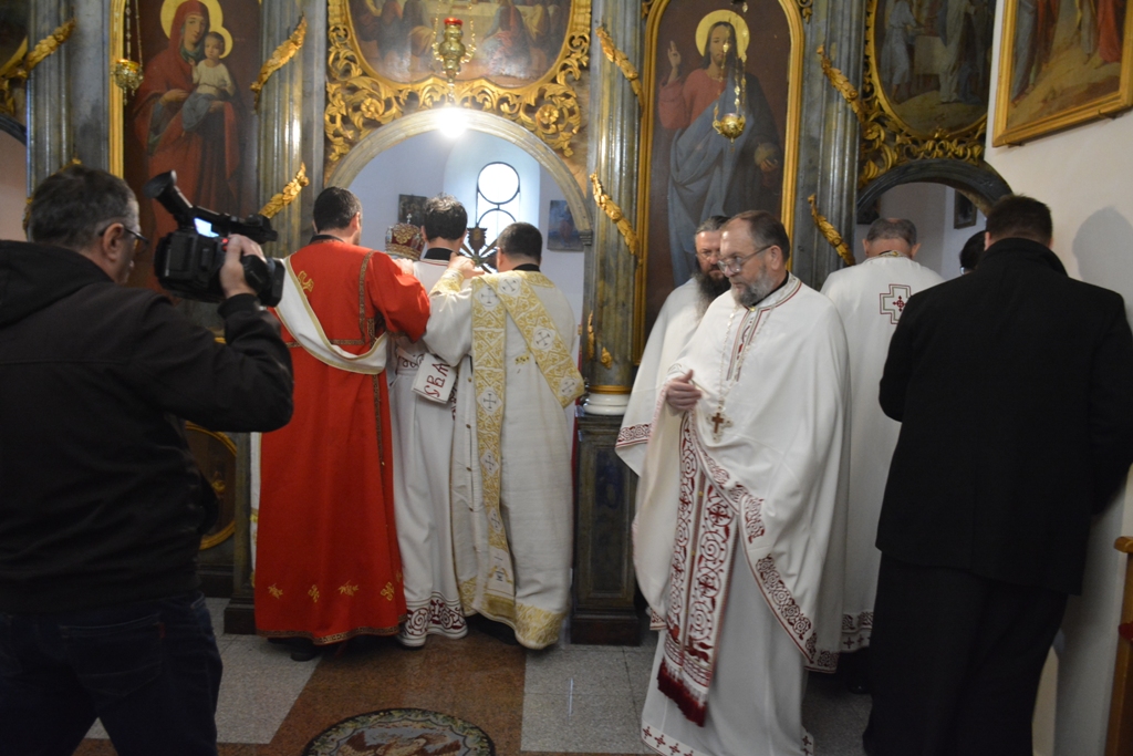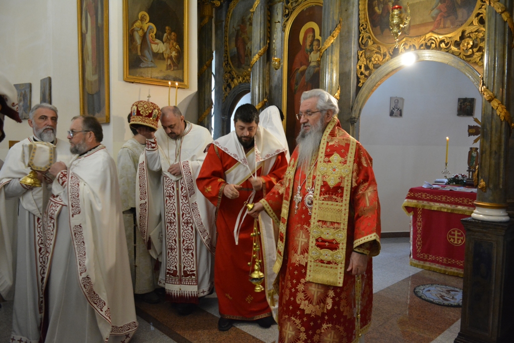 Високопреосвећеном саслуживали су протојереј-ставрофор Љубиша Смиљковић, протојереј-ставрофор Златко Димитријевић, јеромонах Серафим, протонамесник Горан Лукић, протођакон Иван Гашић и ђакон Бојан Миленовић.