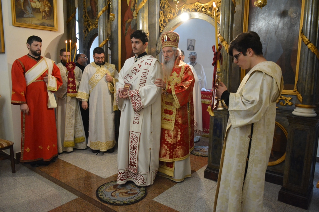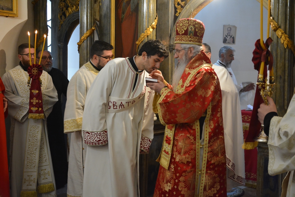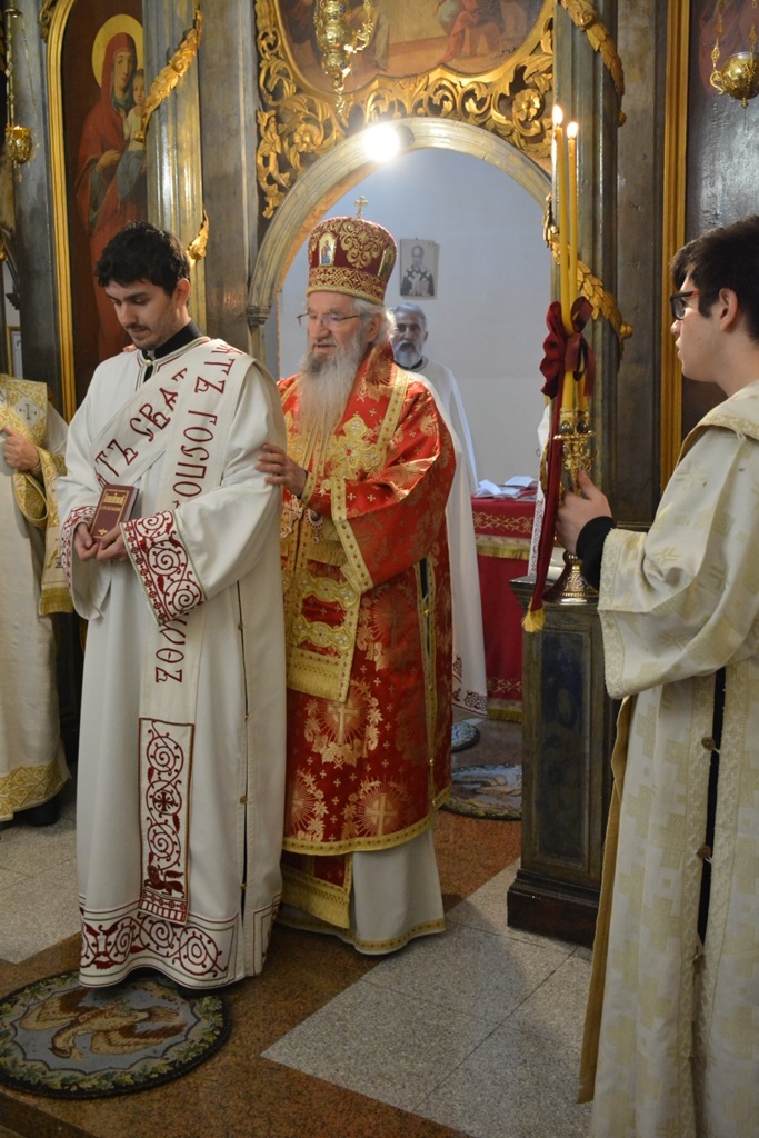 Током Свете Литургије, Митрополит Јован увео је у ред клира дипломираног теолога Милоша Кузмановића. Владика је позвао новорукоположеног ђакона да непрестано бди и стражи над собом и да кроз свештеничку службу себе духовно усавршава и изграђује и да има страха Божијег у себи, јер нам то помаже да не скренемо са пута који води у живот вечни.
