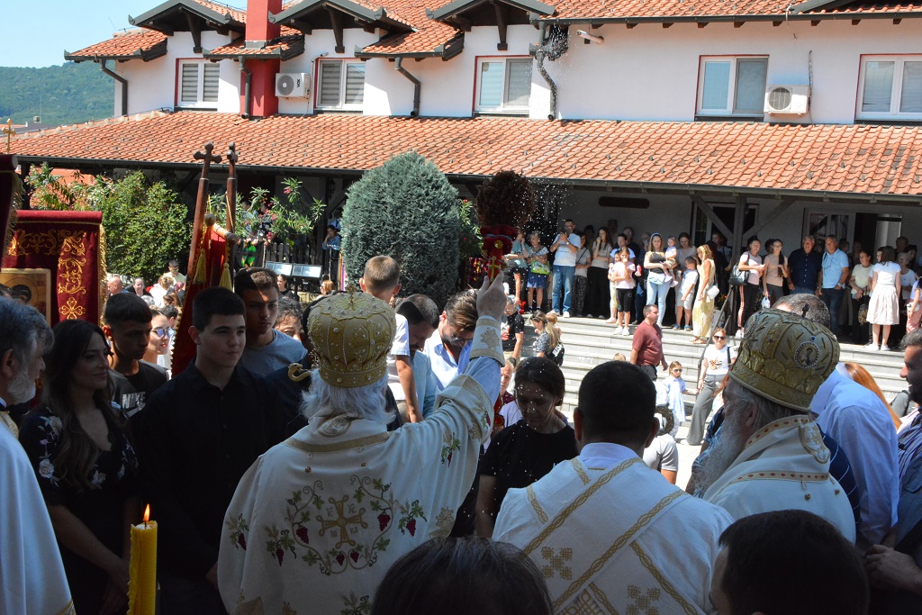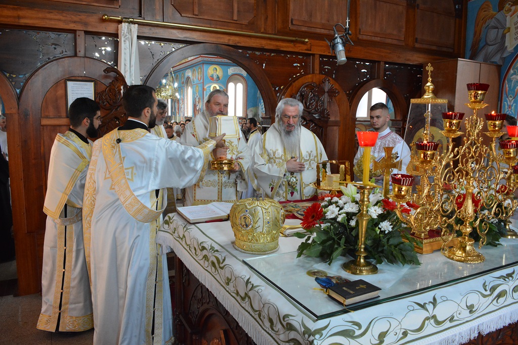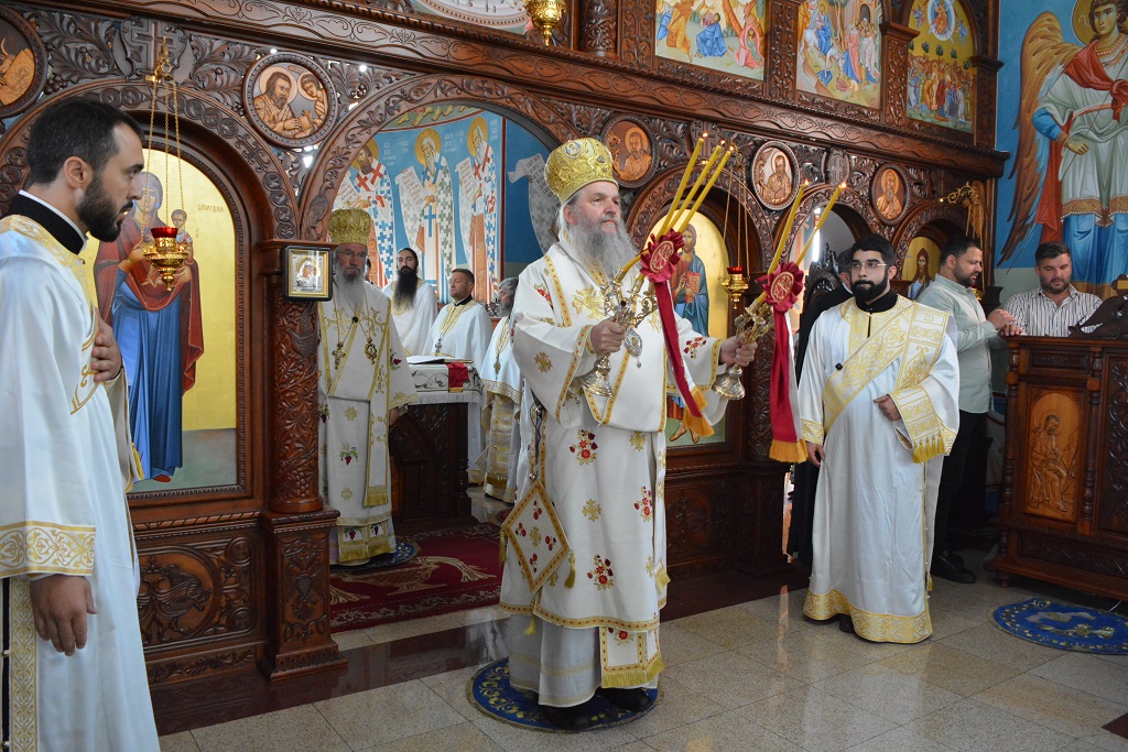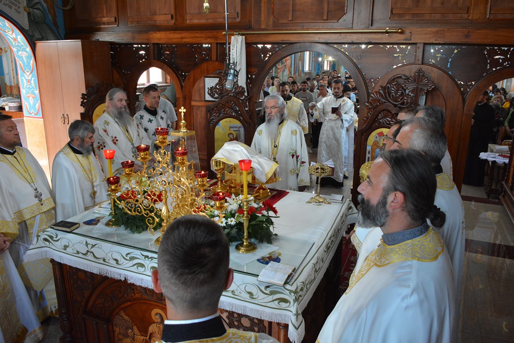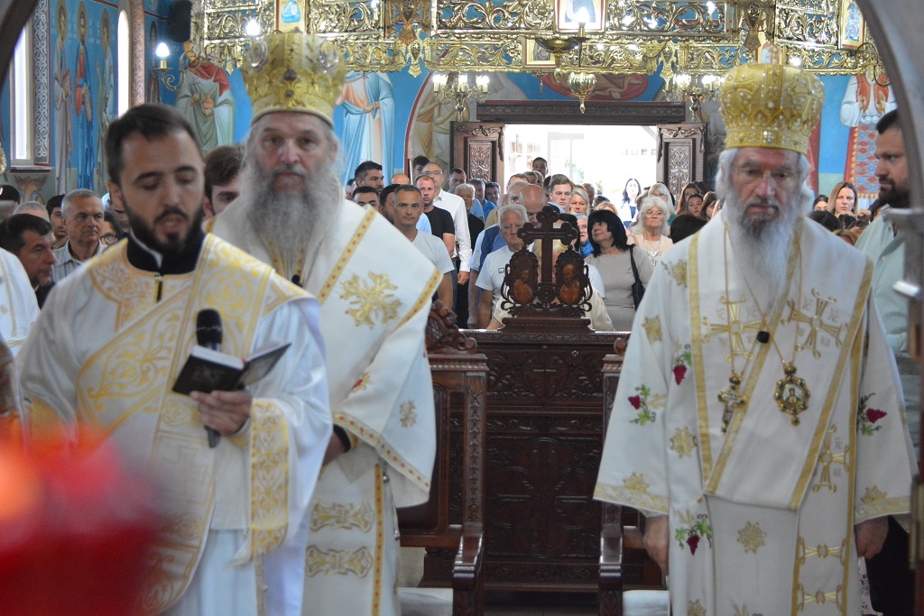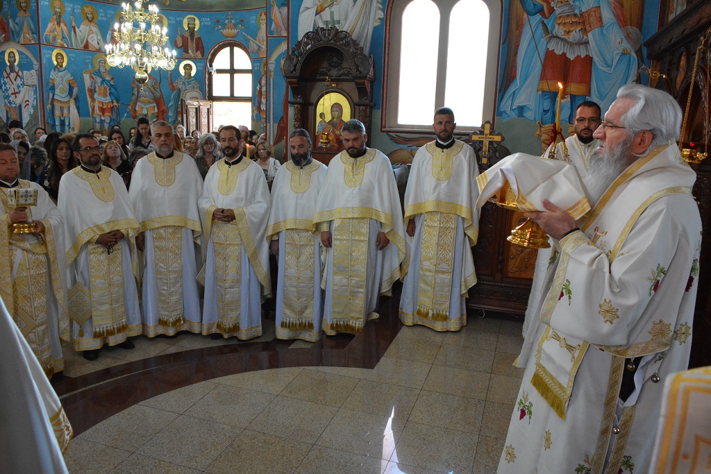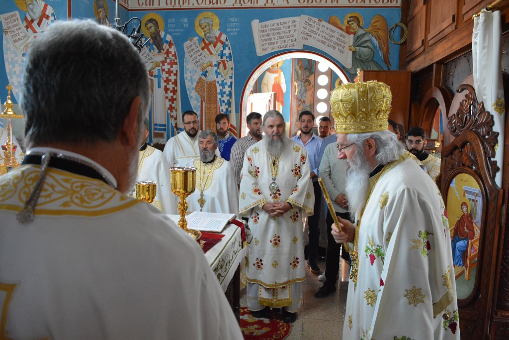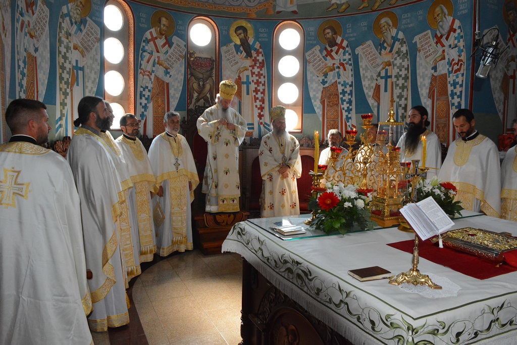 У току Свете Литургије након прочитаног Светог Јеванђеља, Митрополит Јован је окупљенима честитао храмовни славу, а потом част беседе препустио Епископу Андреју.
