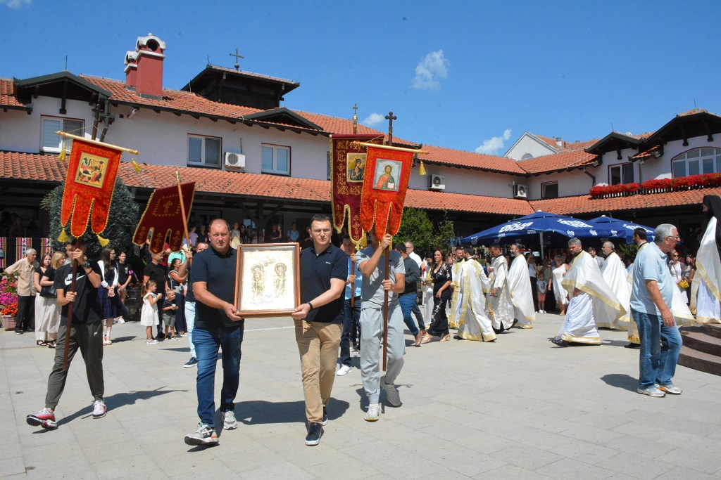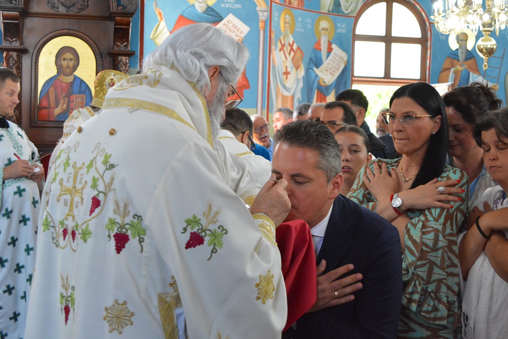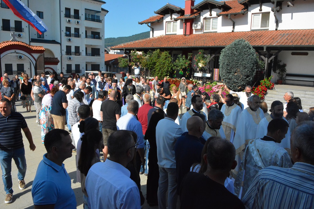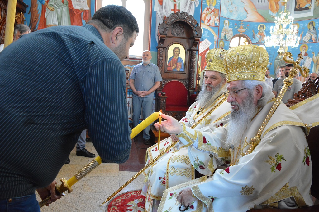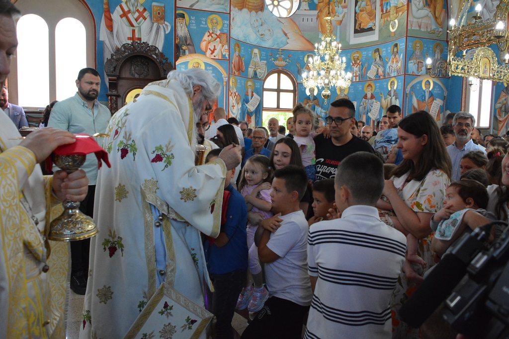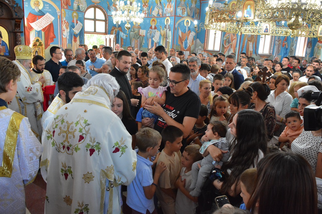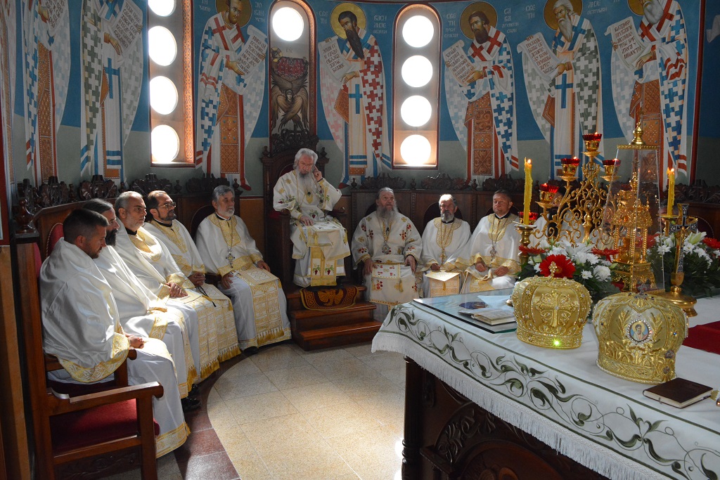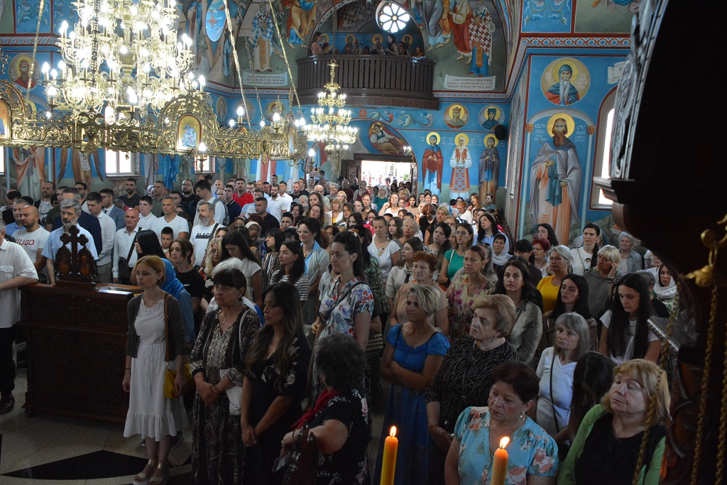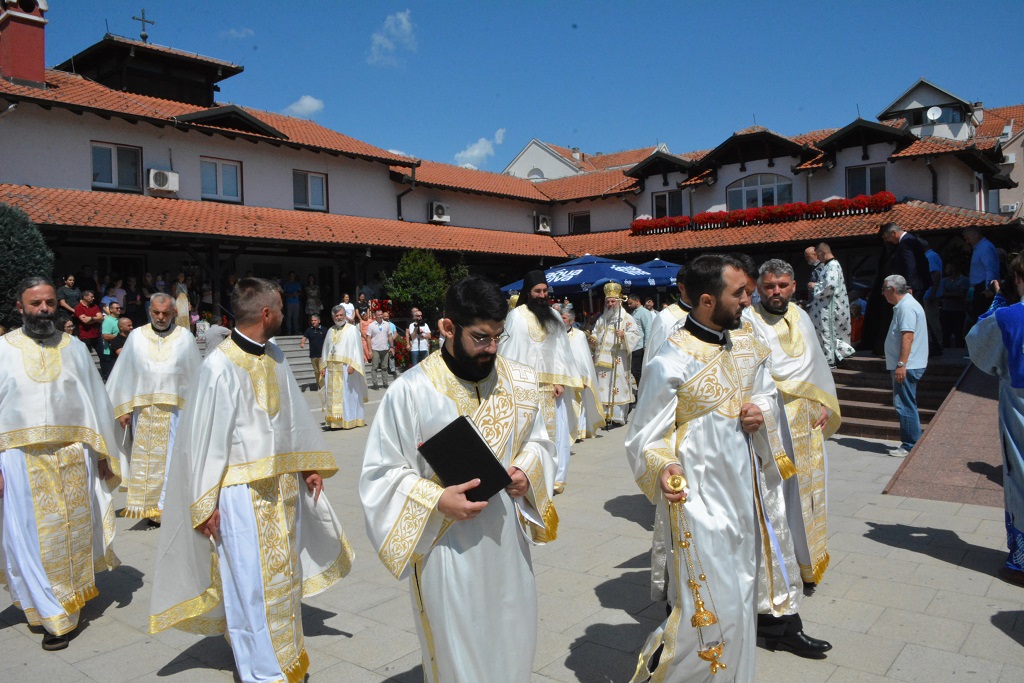 У току Свете Литургије након прочитаног Светог Јеванђеља, Митрополит Јован је окупљенима честитао храмовни славу, а потом част беседе препустио Епископу Андреју.