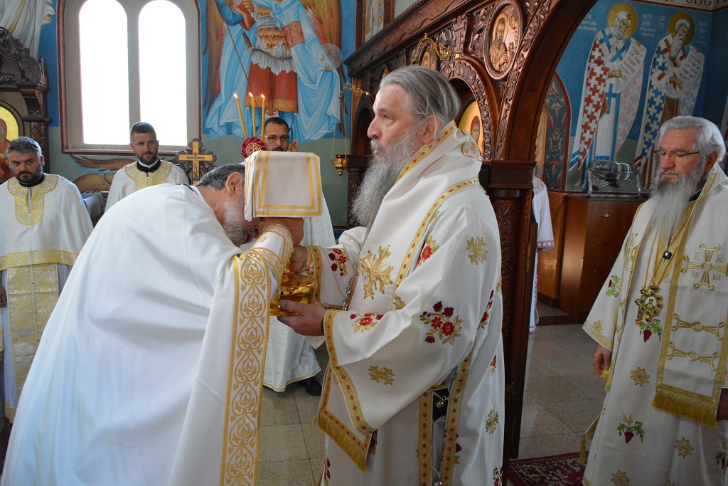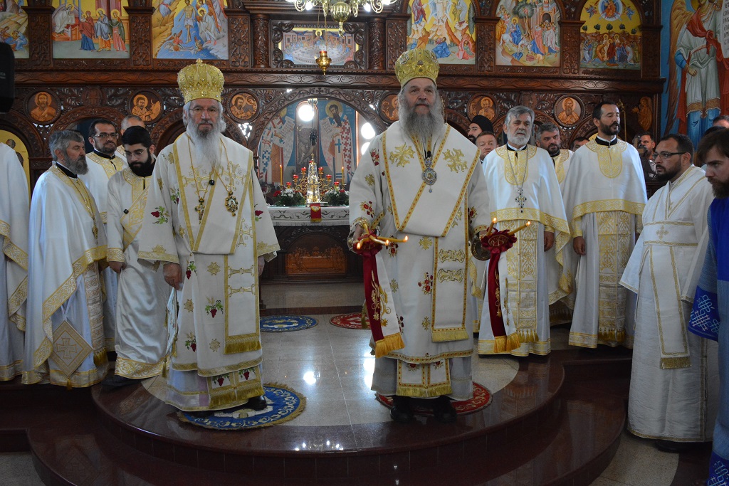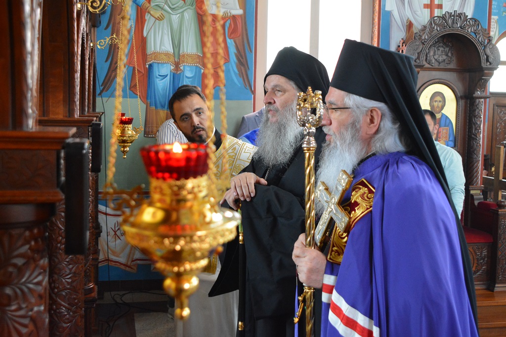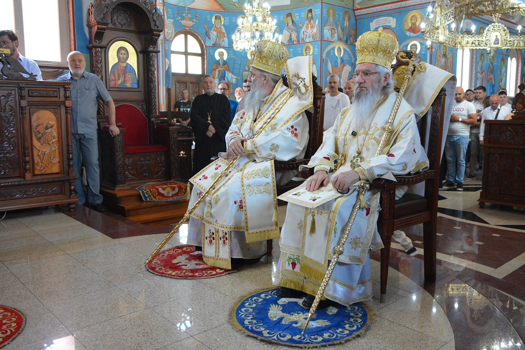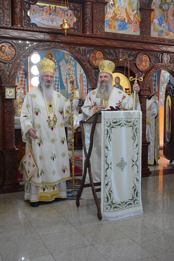 Његово Високопреосвештвнство је служио Свету Архијерејску Литургију у храму посвећеном Светим апостолима Петру и Павлу, на дам храмовне славе, а као свога уваженог госта дочекао је Епископа Андреја, Архијереја швајцарског.