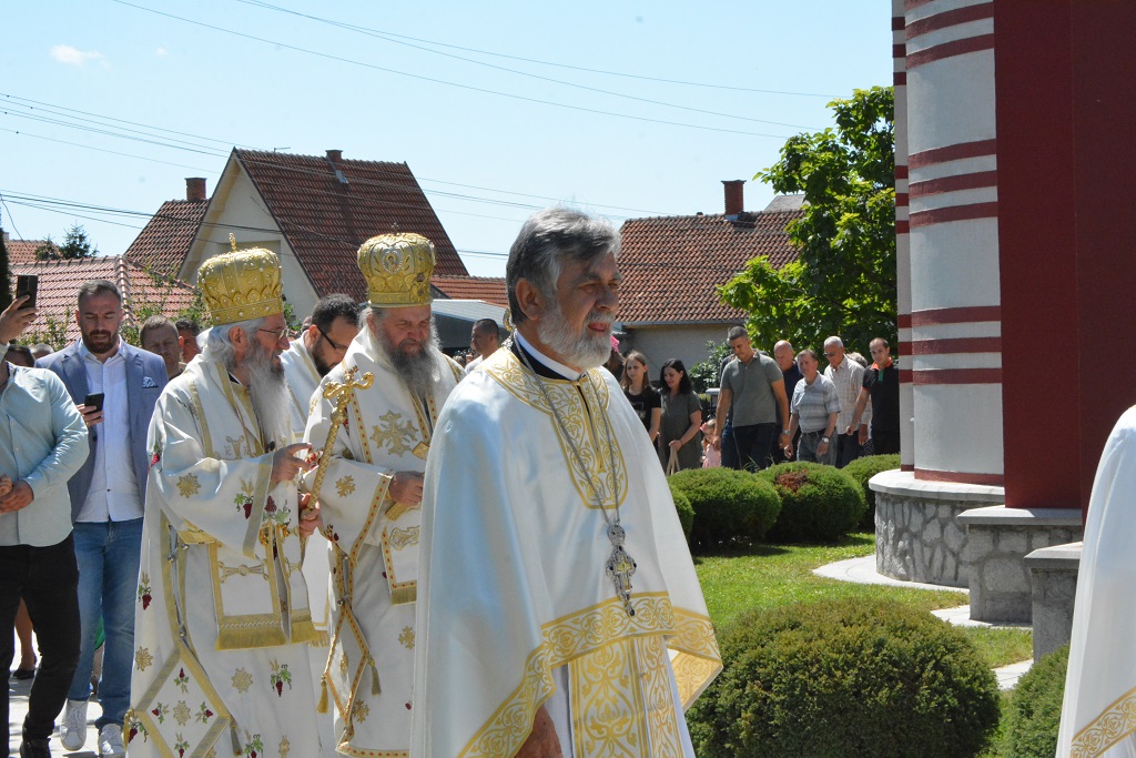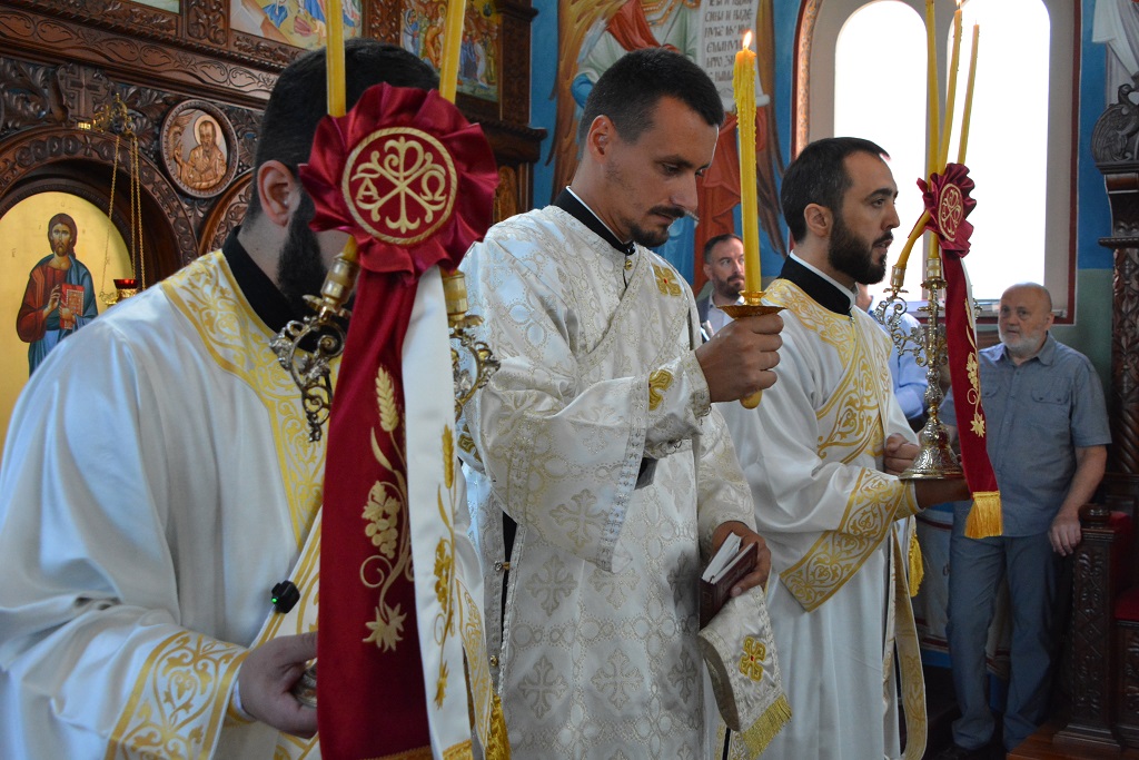 Нашим архијерејима су саслуживали: Архијерејски намесник орашачки, протојереј-ставрофор Мићо Ћирковић, протојереј-ставрофор Ђорђе Мишковић, гост из Баната, протојереј-ставрофор Драган Јездић, гост из Брчког, Архијерејски намесник лепенички, протојереј Срећко Зечевић, јеромонах Јован (Прокин), протојереји Љубиша Ђураш и Александар Миловановић, протонамесници Иван Теодосић и Милош Митровић и јереј Марко Урошевић, ђакони Александар Бабић, Лазар Маријановић и Дејан Обрадовић.