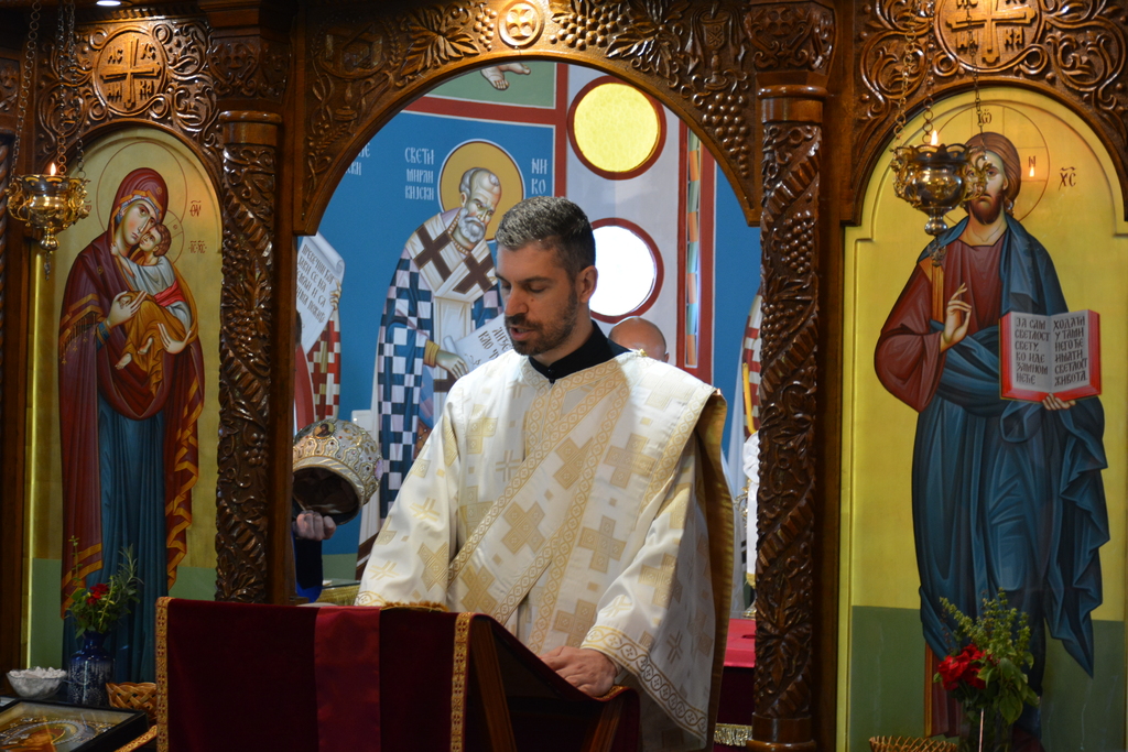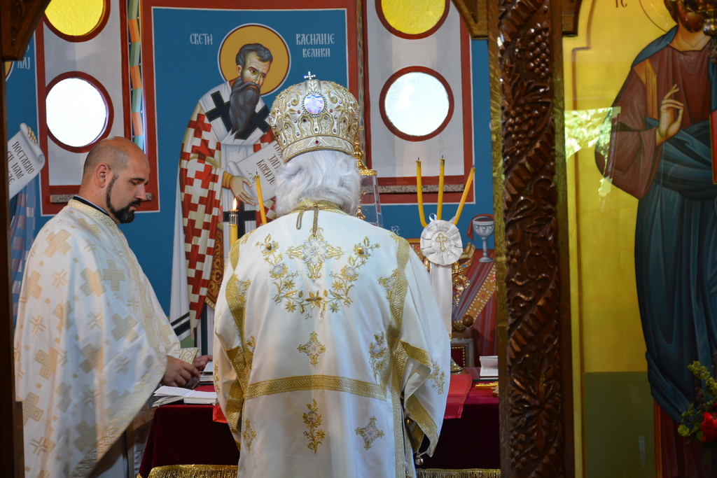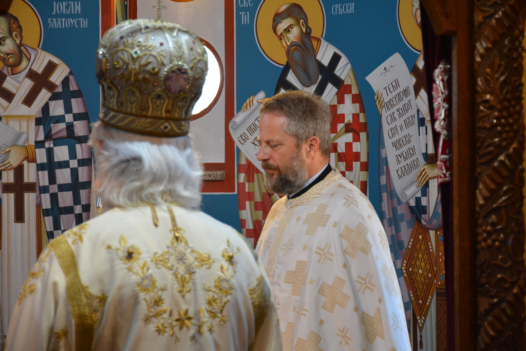 Митрополиту су саслуживали протојереј Саша Антонијевић, јереј Милош Ђурић и ђакон Стефан Јанковић.