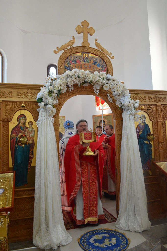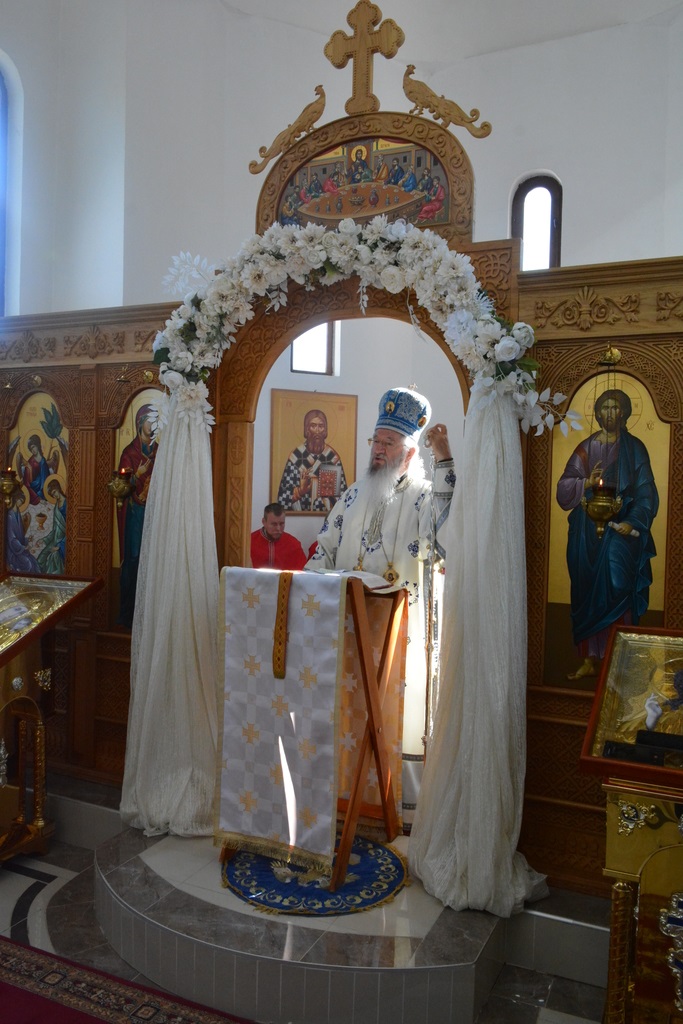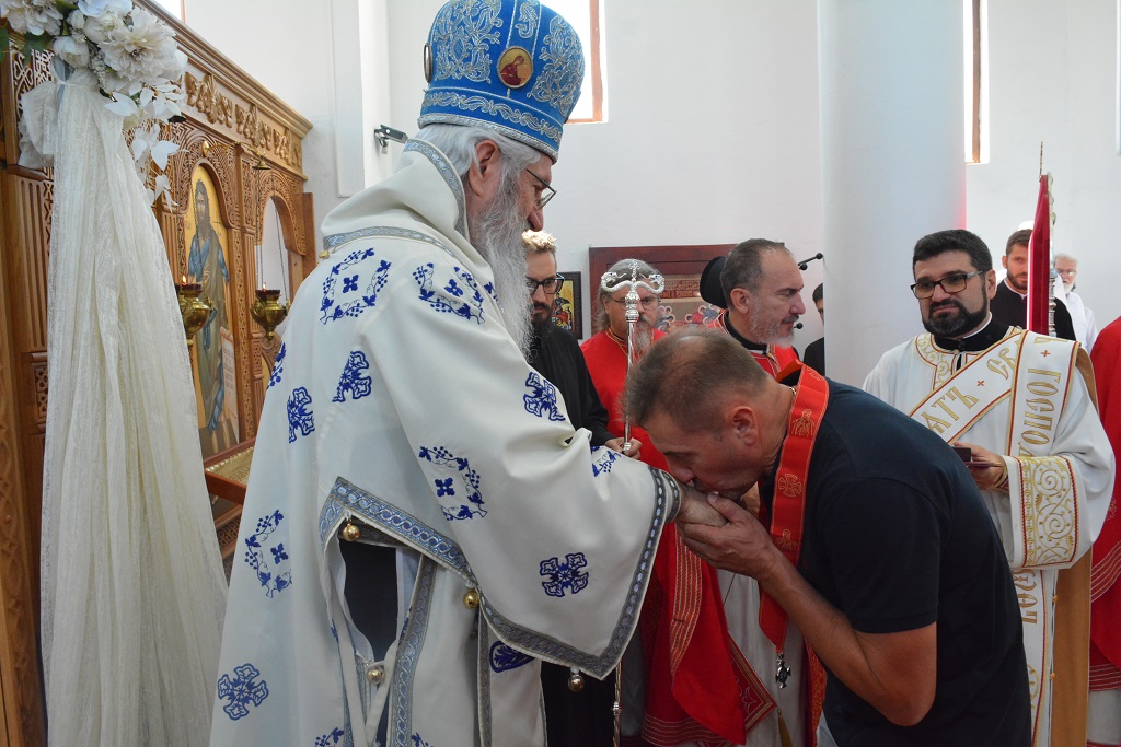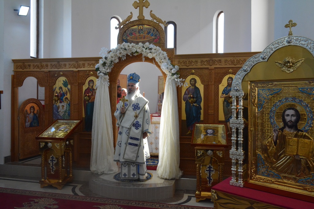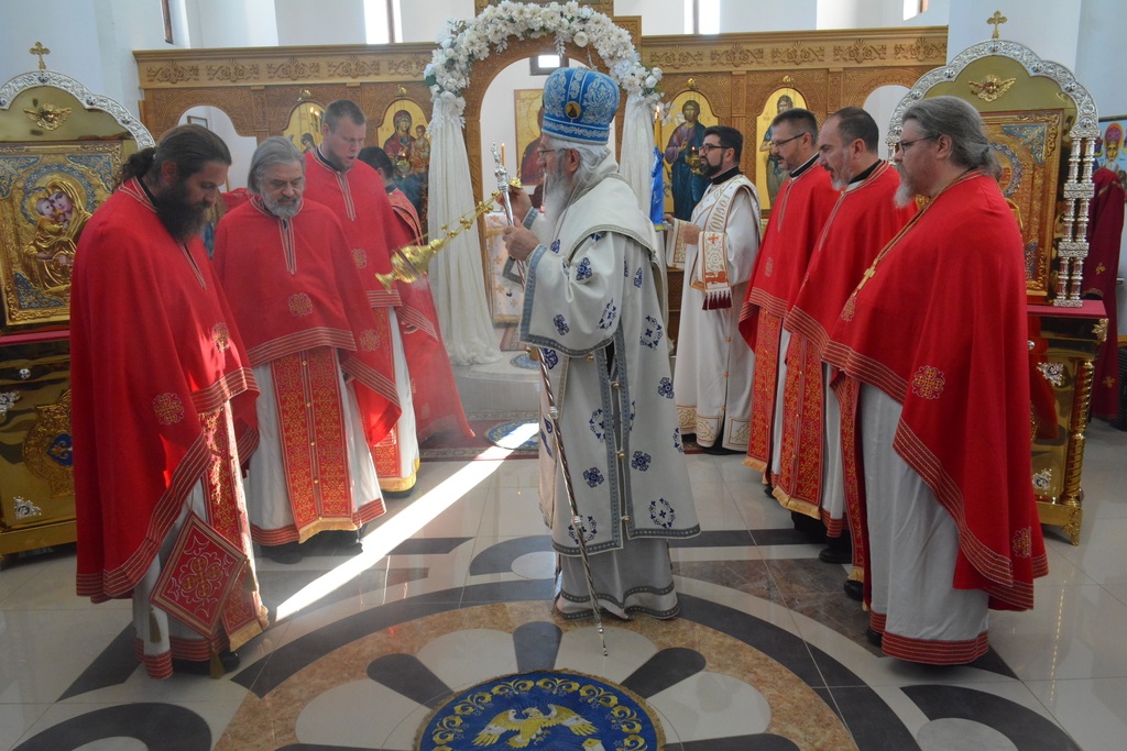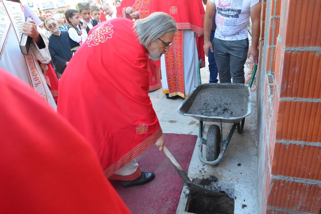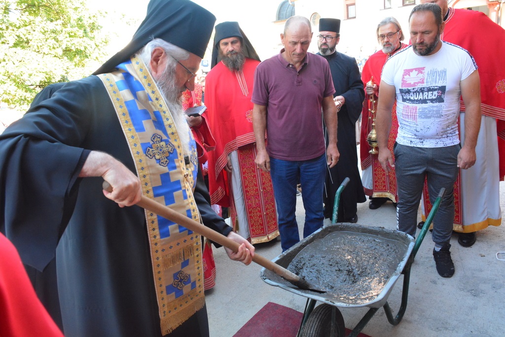 Црква Свете Тројице била је преиспуњена радошћу сусрета верног народа са својим првојерархом. Нарочита радост причињена је освећењем темеља за нови парохијски дом у порти храма, које је Митрополит Јован извршио непосредно пре Свете Литургије.