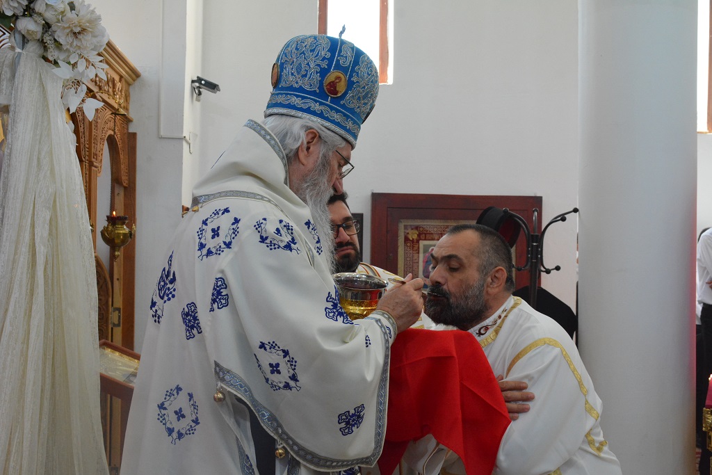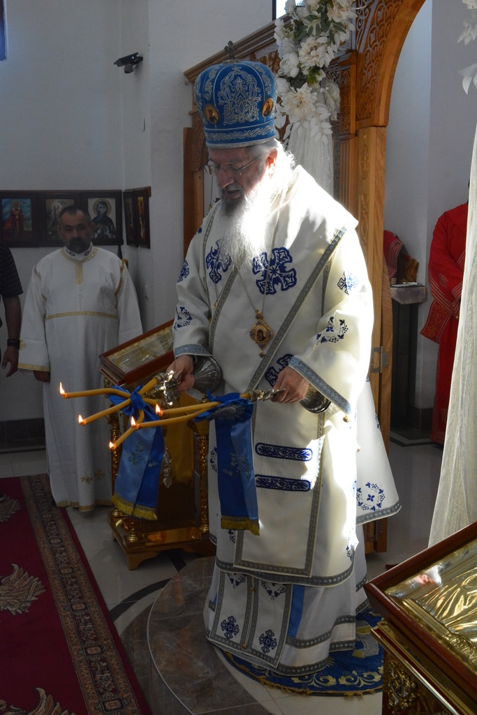 Високопреосвећеном Архијереју саслуживали су архимандрит Евтимије Јошанички, јеромонах Пајсије, настојатељ манастира Светог Пајсија Светогорца, архијерејски намесник белички протојереј Александар Гајић, протојереј Дејан Ђорђевић, протонамесник Немања Стефановић, јереј Миодраг Марковић, протођакон Иван Гашић и ђакон Далибор Нићифоровић, а у олтару су помагали чтечеви Предраг Димитријевић и Предраг Јанковић.
