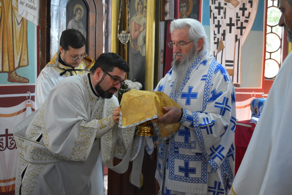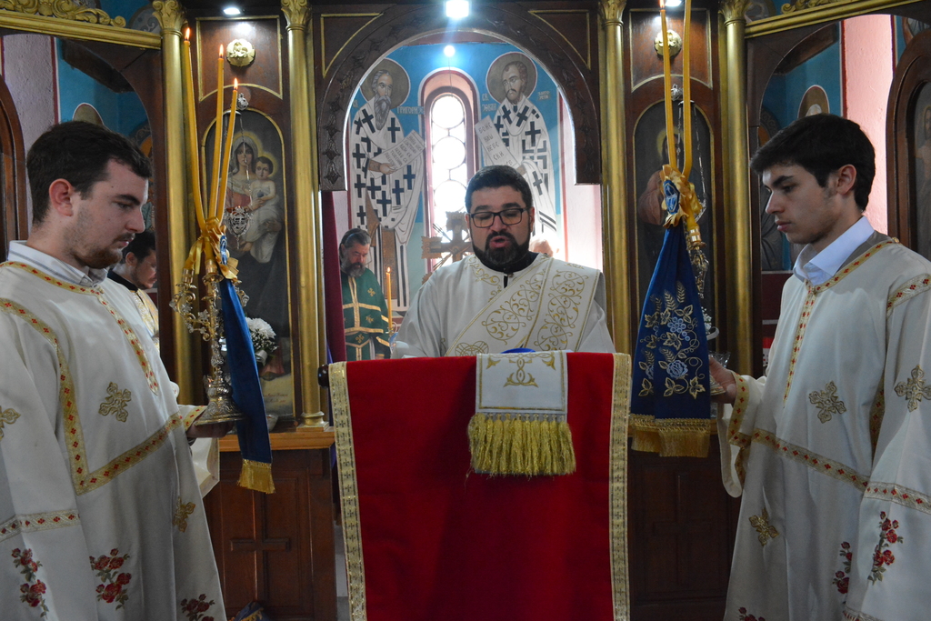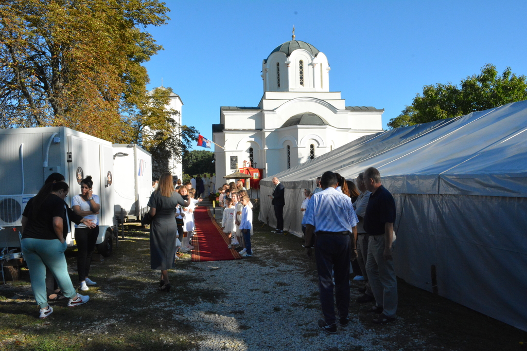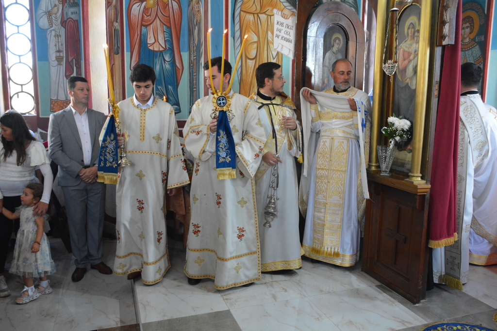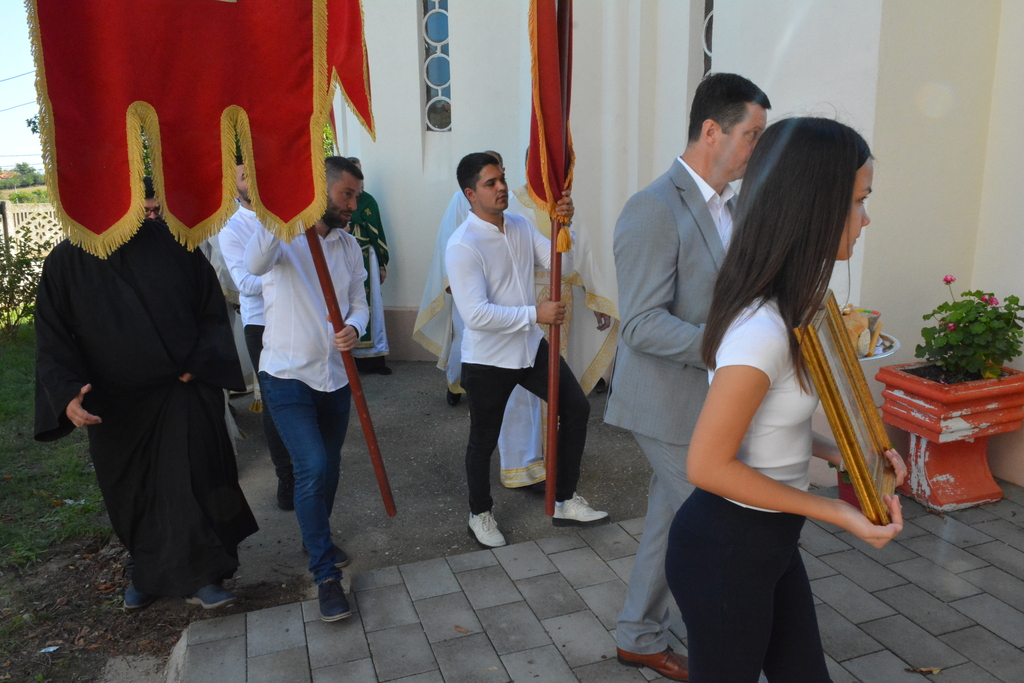 Срећна слава овога храма, срећна слава данашњем колачару, председнику општине господину Бранку. Срећна слава свима нама који смо се данас сабрали у овај храм да прославимо ону која је већа, узвишенија, чистија, смиренија и од херувима и од серафима тј. Пресвету Богородицу.