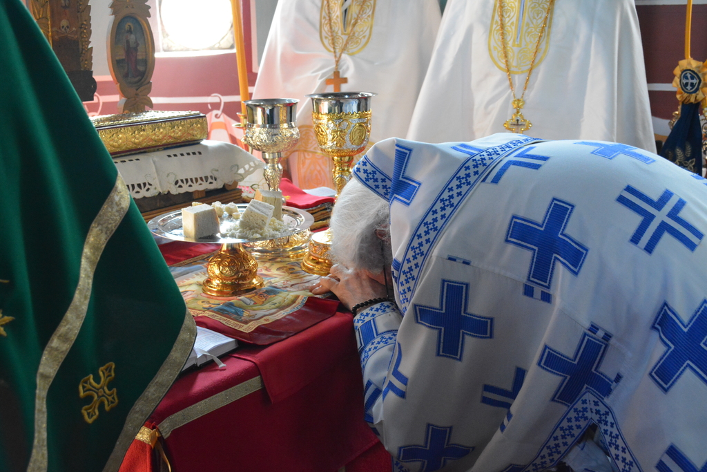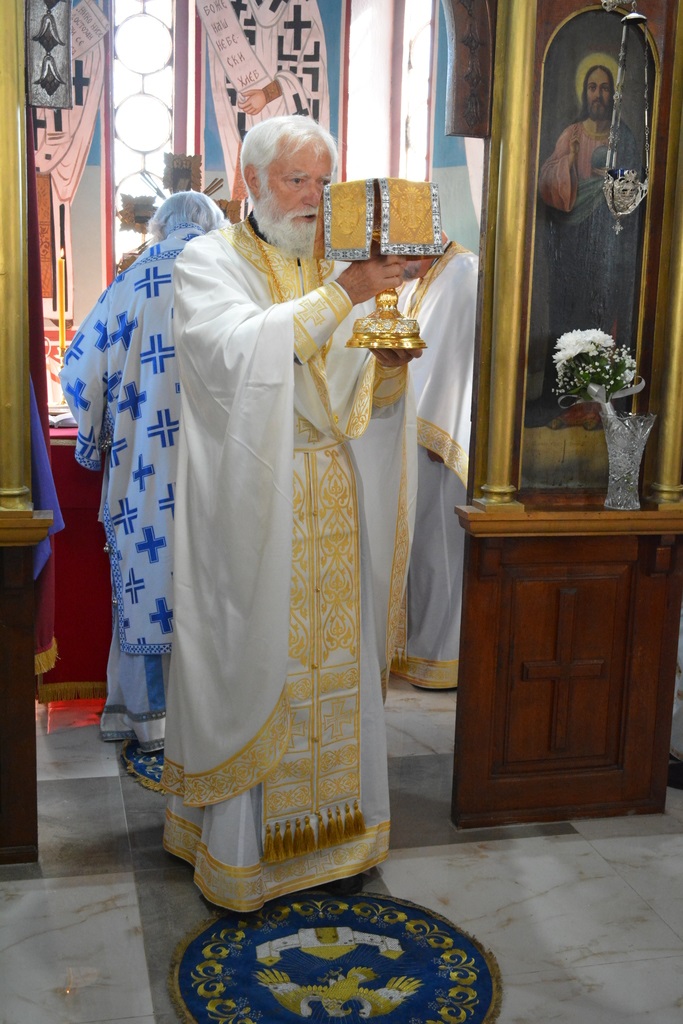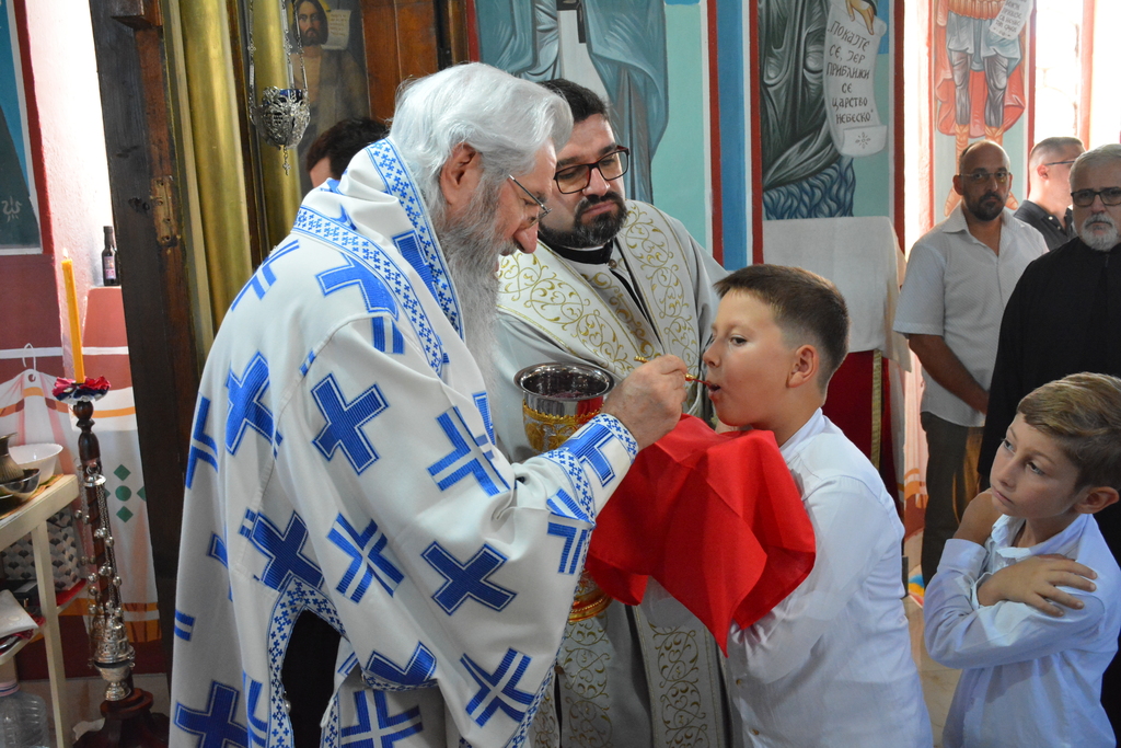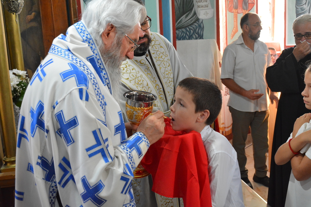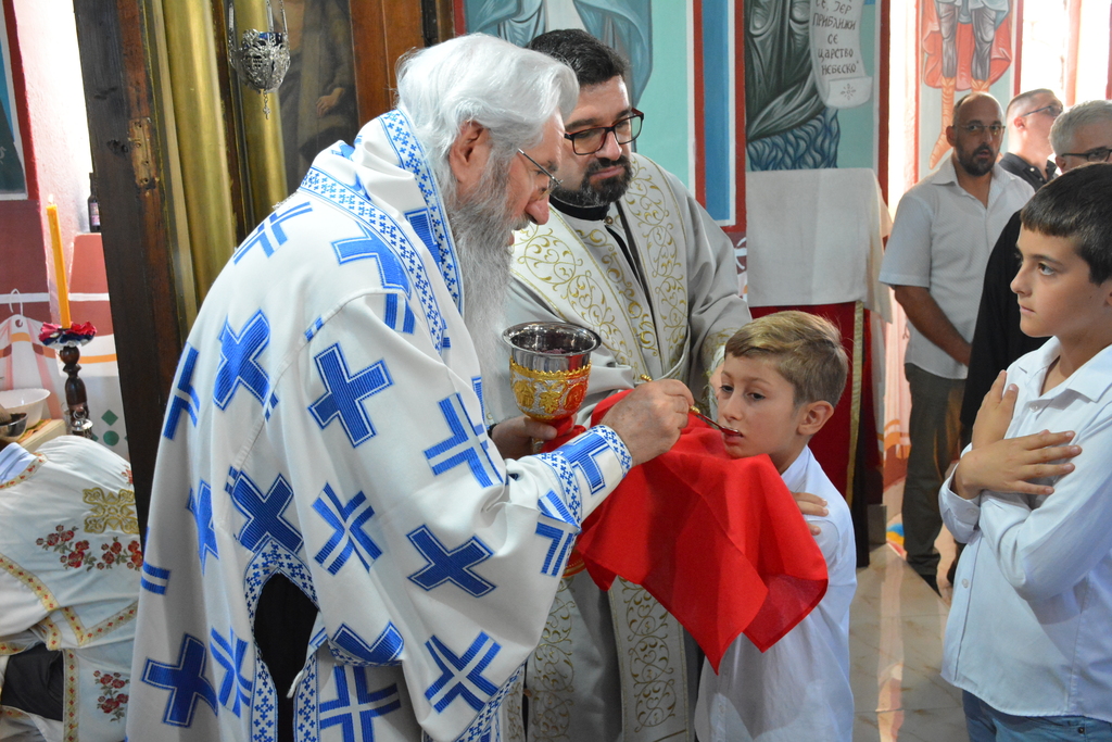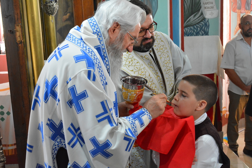Срећна слава овога храма, срећна слава данашњем колачару, председнику општине господину Бранку. Срећна слава свима нама који смо се данас сабрали у овај храм да прославимо ону која је већа, узвишенија, чистија, смиренија и од херувима и од серафима тј. Пресвету Богородицу.