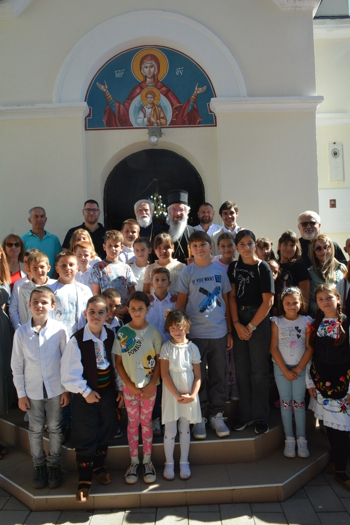 Други празник који ми данас празнујемо јесте Рођење Пресвете Богородице. Она нас је данас овде сабрала у овај у храм који је посвећен њој, њој која је већа, шира од Небеса како црквени песник то каже. Ево видите и овде имамо Богородицу која се зове „Ширшаја Небес“, она која је шира од Небеса, већа од Небеса. Видите како она држи руке, њен загрљај је већи од васионе. Њено крило веће је од Неба и од земље. Питање је само где се ми налазимо и где ћемо се ми наћи? У чијем крилу и у чијем загрљају? Да ли ћемо се наћи у крилу Мајке Божије у загрљају Мајке Божије или ћемо се наћи у загрљају своје себичности, своје саможивости, гордости и сујете. Ако смо у загрљају Мајке Божије онда чега да се плашимо? Мајка ваљда воли највише своју децу! Она ће да гине, она се сва жртвује за децу своју. Она се жртвује зато што има љубав, а љубави нема без жртве. Зато је Пресвета Богородица најчудеснија личност после Господа нашега Исуса Христа. Она је свела Бога на земљу и онај мост преко кога је Господ узишао на Небо и преко кога ћемо и ми браћо и сестре, ако се удостојимо љубави Мајке Божије узаћи не Небо. Дакле, она је увела Бога у овај свет како каже тропар данашњи. Пресвета Богородица је браћо и сестре, због своје чедности, због своје смирености, због своје чистоте и савршенства постала знак, како смо ми у Цркви синоћ у једној песми певали: знак благовољења Божијега тј. постала је знак благе воље-добре воље, доброте и то највеће Доброте. Ово је „д“ је са великим словом, браћо и сестре. Највеће доброте која се не може никада до краја схватити, јер Син Божији кроз Пресвету Дјеву је постао један од нас у свему сличан као и ми, осим у греху. Он је Бог који је постао човек, а остао Бог и тиме је показао да и човек може да постане бог, не по суштини, већ по благодати Божијој. Те особине Мајке Божије, та послушност, то смирење и простота учинили су да она постане Богородиица. Шта је она рекла архангелу Гаврилу кад је он дошао да јој каже да ће родити Спаситеља света? Збунила се! Не зна како, шта? Али због послушности и смирења иако је казала: ја остајем у девичанству. Ја сам се заветовала за девичанство, али нека ми буде по речи твојој. (Лк 1, 38) По чијој речи? Божијој речи. А архангел Гаврило је Божију вест пренесо Пресветој Богородици и ту савршену Божију простоту и ту савршену љубав Божију слива у једну личност међу људима, а то је управо Мајка Божија, зато су пуна уста мајке. То је она која је имала такво срце, која је имала такву чисту утробу да је могла да прими Онога који је већи од васељене, Који је већи од Небеса тј. Господа Христа коме су и Небеса била мала. Она је постала престо на који је могао да се усели и настани у њему Син Божији, ради нашега спасења. Она је оно што смо ми као људски род могли да принесемо пред Престо Божији и да она буде то наше Амин. Амин значи потврду, да тако буде. Она је управо то наше Амин, наша потврда, на шта? На промисао Божију. Промисао Божија је управо да се свет спасе, да се спасе сваки човек. Промисао Божија је браћо и сестре, уствари план на Његову икономију спасења. То је оно како црквеним језиком кажемо: домострој. Дакле, то је Амин на љубав Његову на нас људе у односу на читав свет, на читав род људски зато, браћо и сестре, живимо животом којим је Богородица живела. Неко ће рећи: ја не могу, ја сам грешан/грешна. Управо зато што смо грешни, али ако имамо веру у Бога, ако 