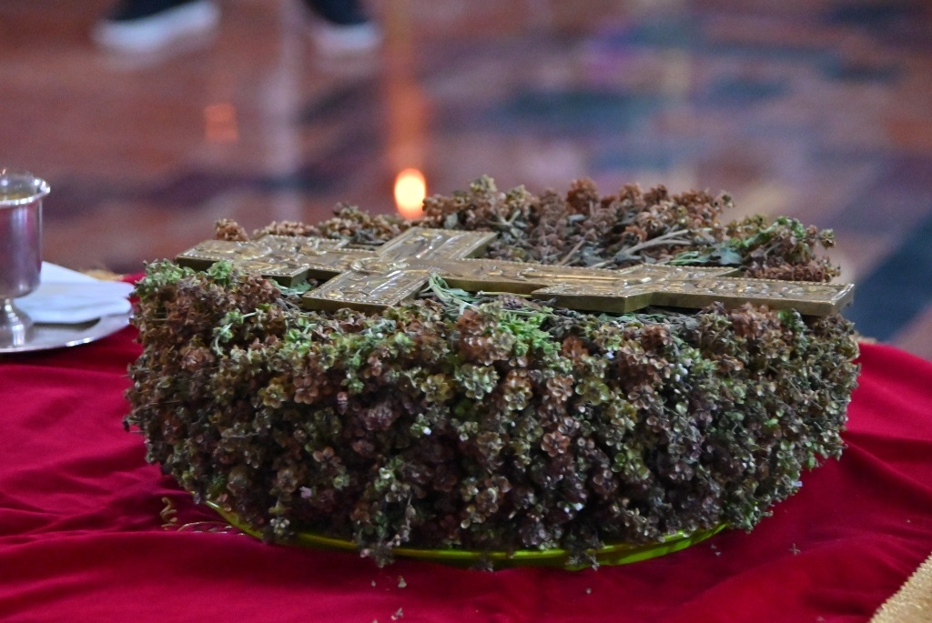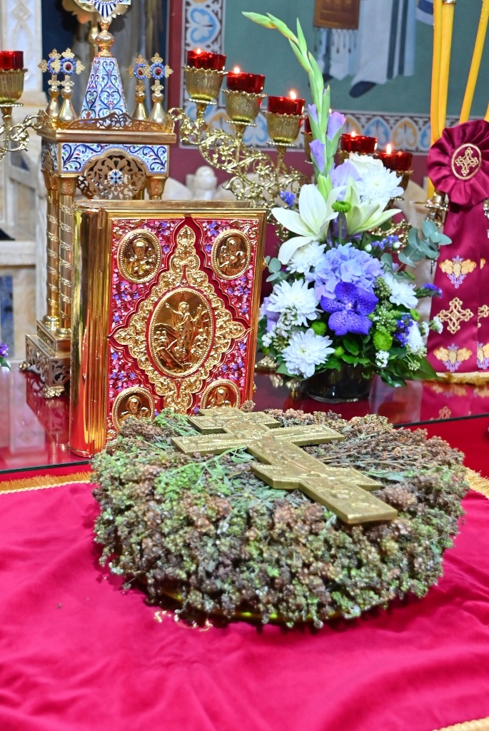 Пред крај јутрења када се пева свечано: «Свети Боже, Свети Крепки, Свети Бесмртни помилуј нас», Митрополитје узео Часни Крст, украшен босиоком и цвећем, и у свечаној литији га пренео из олтара до средине храма, и подигао га у ваздух са четири стране (јужне, источне, северне и западне), што символише четири крака Крста. Јер Крст Часни преиспуњава свецели космос, сабира свецелу твар љубављу Христовом. Поставивши Часни Крст на постоље насред цркве, Митрополит се заједно са читавим сабрањем верног народа поклонио Часном Крсту, уз певање молитве:
