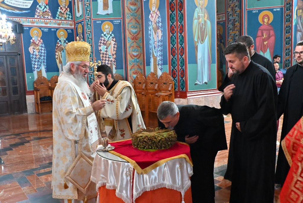 На сам дан празника Воздвижења Часног Крста, Високопреосвећни митрополит Јован са свештенством Саборног храма у Крагујевцу и верним народом, служио је Свету Архијерејску Литургију.