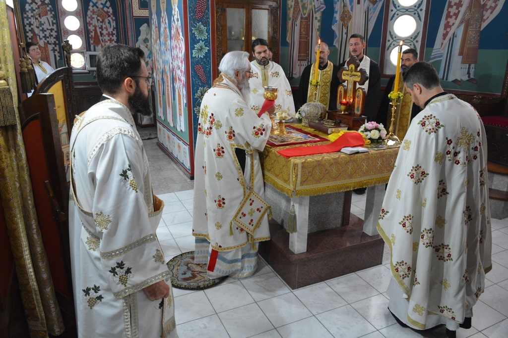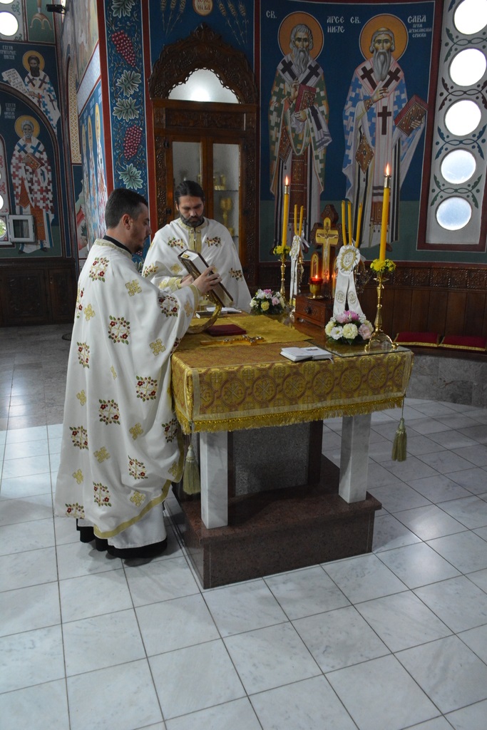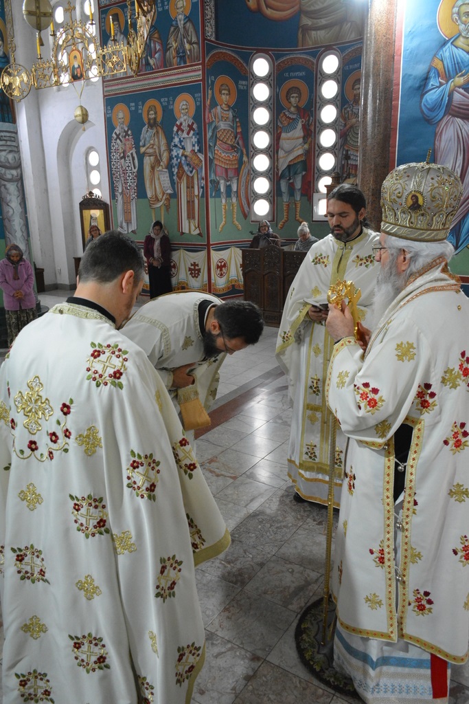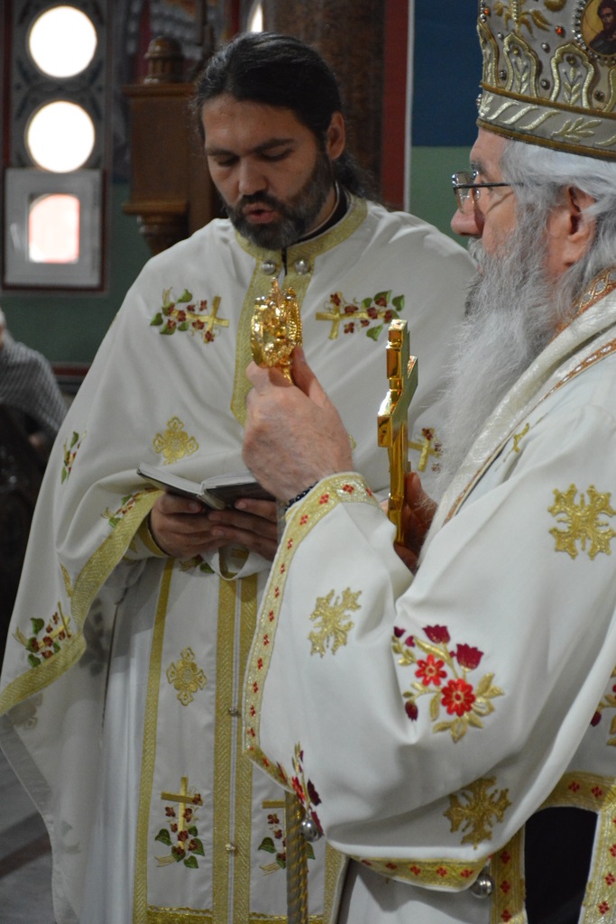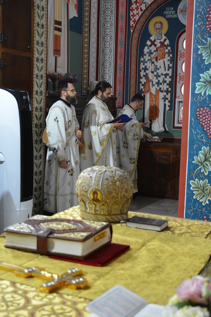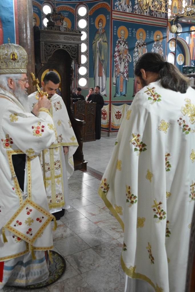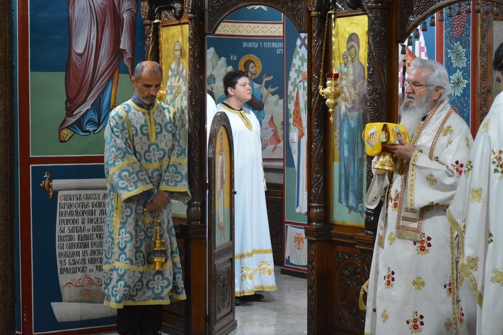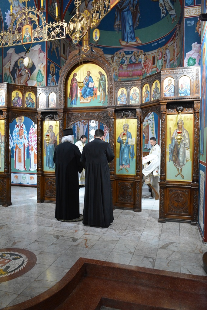 Високопреосвећеном су саслуживали: јереј Александар Мирковић, јереј Владимир Вранић и ђакон Александар Ђорђевић.