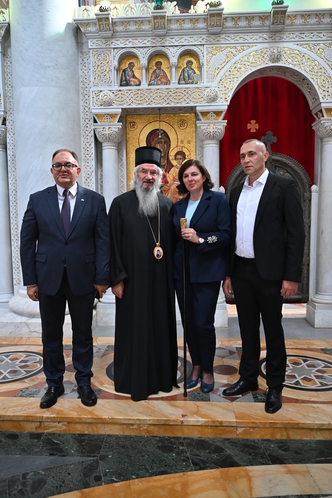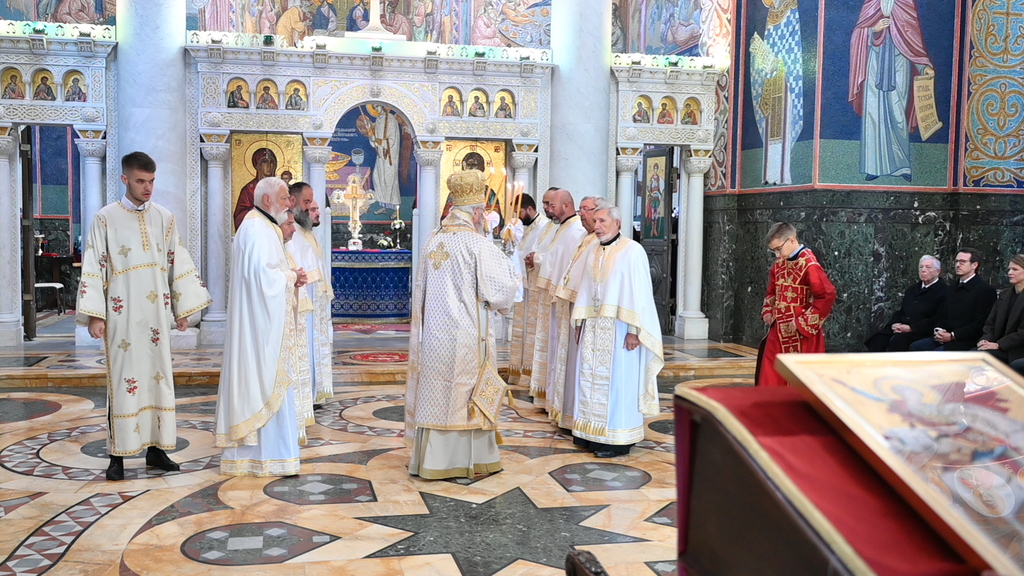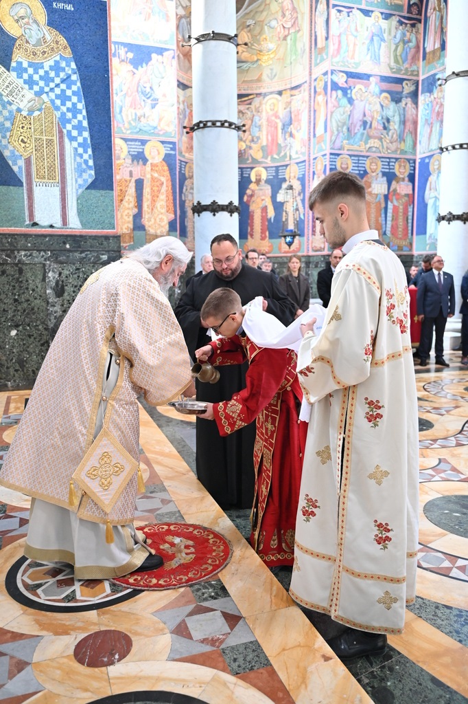 Митрополиту су саслуживали свештеници шумадијске епархије. Литургију су појали чланови певачког друштва „Србски православни појци“ из Београда.