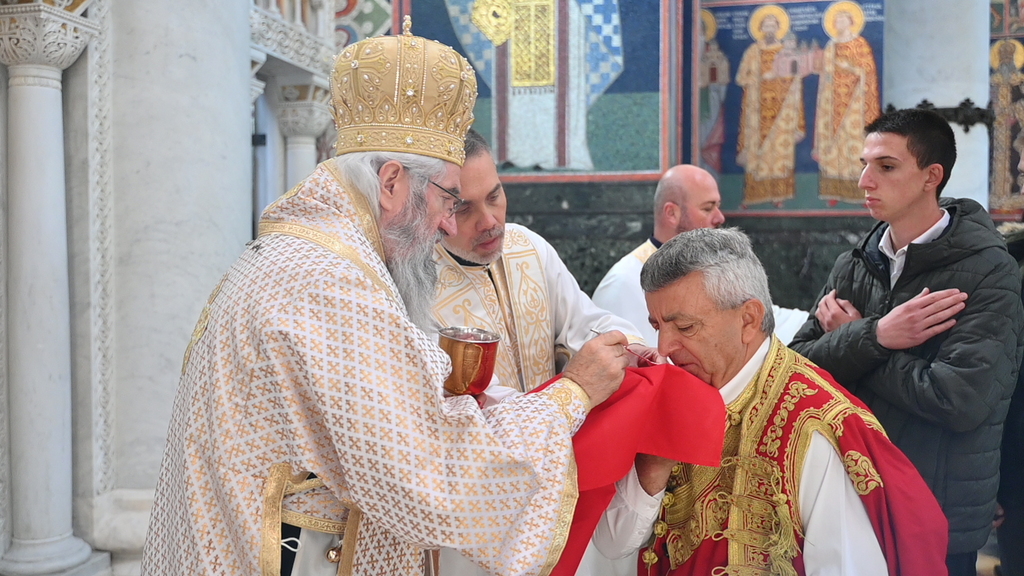 После прочитаног Јеванђеља беседио је владика Јован: „У име Оца и Сина и Светога Духа, помаже вам Бог, браћо и сестре. Данас наша помесна Српска православна црква и ми који смо у Цркви, да, а у Цркви су они који живе Цркву. У Цркви су они који мисле Цркву. У Цркви су они који слушају Цркву. И ми управо данас славимо Светог апостола и јеванђелиста Јована. Из Јеванђеља видимо, браћо и сестре, да је Свети Јован апостол био љубљени ученик Христов. То је, у ствари, онај ученик који је једини са Пресветом Богородицом остао до краја под Крстом Христовим када су Христа распињали. То је онај апостол који је на Тајној вечери наслонио главу на груди Христове оном приликом кад је Христос рекао својим апостолима да ће га један од њих издати. А он, наслонивши главу на груди Христове, рече: „Господе, ко је тај?“ Збуњен и он, збуњени и апостоли. Ко то може? Ко може од апостола да изда Христа, који су са њим толико времена провели, који су се уверили да је Он Бог, али да је Он и човек? Али Христос каже: „Онај који умочи са мном у зделу, у чинију, он ће ме издати.“ То је био апостол Јуда. Дакле, браћо и сестре, оно што је страшно, што прати род људски до дана данашњег, то је, у ствари, издајство. Издајство је најгори чин који човек може да учини у животу, поготово кад изда онога који га је створио, кад изда онога кога највише љуби, који га највише воли, а то је Господ наш Исус Христос. Не може нас нико тако волети, браћо и сестре, и ако знамо колико нас воли отац, мајка, браћа, сестра, деца, пријатељи, и колико је то дивно кад осетимо љубав од других. Али једно морамо да знамо — да нас нико не воли, нити може волети као што нас воли Бог. Зато и данас, у овом апостолу који смо чули, каже се да је Бог заволео нас пре него што смо ми заволели Њега. Дакле, браћо и сестре, то је исти онај ученик који је присуствовао васкрсењу кћери Јаирове и који је присуствовао Преображењу Господњем на Тавору. Апостол Јован је онај ученик који је написао, браћо и сестре, четврто Јеванђеље и три посланице. Свети Јован заиста је био сам саткан од љубави. Он је дисао љубав, а права љубав не дели људе. Она подједнако воли и добре и лоше. Дакле, браћо и сестре, зато и Јеванђеље и посланице Светог апостола Павла заиста највише говоре о љубави. Зашто ово данас посебно спомињем? Па зато што је то дан Светог Јована, и што данас, нажалост, има све мање љубави — оне божанске љубави. Све смо свели на неку људску љубав, која је од данас до сутра. Данас волим некога, живот ћу да дам за њега, а само нека ми нешто учини што је супротно мом схватању. Али то када кажем „мом схватању“, да ли је то заиста моје схватање, да ли сам проверио, да ли је то на правом месту? Ако није у мом схватању, а још поготово ако није у мом интересу, престајем да га волим. И не само што престајем да га волим, почињем да га мрзим. А је ли то хришћанство? Није, браћо и сестре, не. Хришћанство је оно које живи љубављу. Зато апостол Павле каже: шта је љубав? Љубав воли, љубав прашта, љубав се не надима. Љубав никоме не жели зло. Свакоме љубав жели добро. И ако хоћемо да видимо има ли у човеку љубави, само видите да ли он може да воли свакога човека. Људи смо, па се и замеримо, па, што би рекао наш народ, посвађамо се. А сме ли то да постане суштина мог живота? А код многих постаје суштина живота онима који немају љубави. И најстрашније је кад се љубав претвори у мржњу. А мржња изобличи 